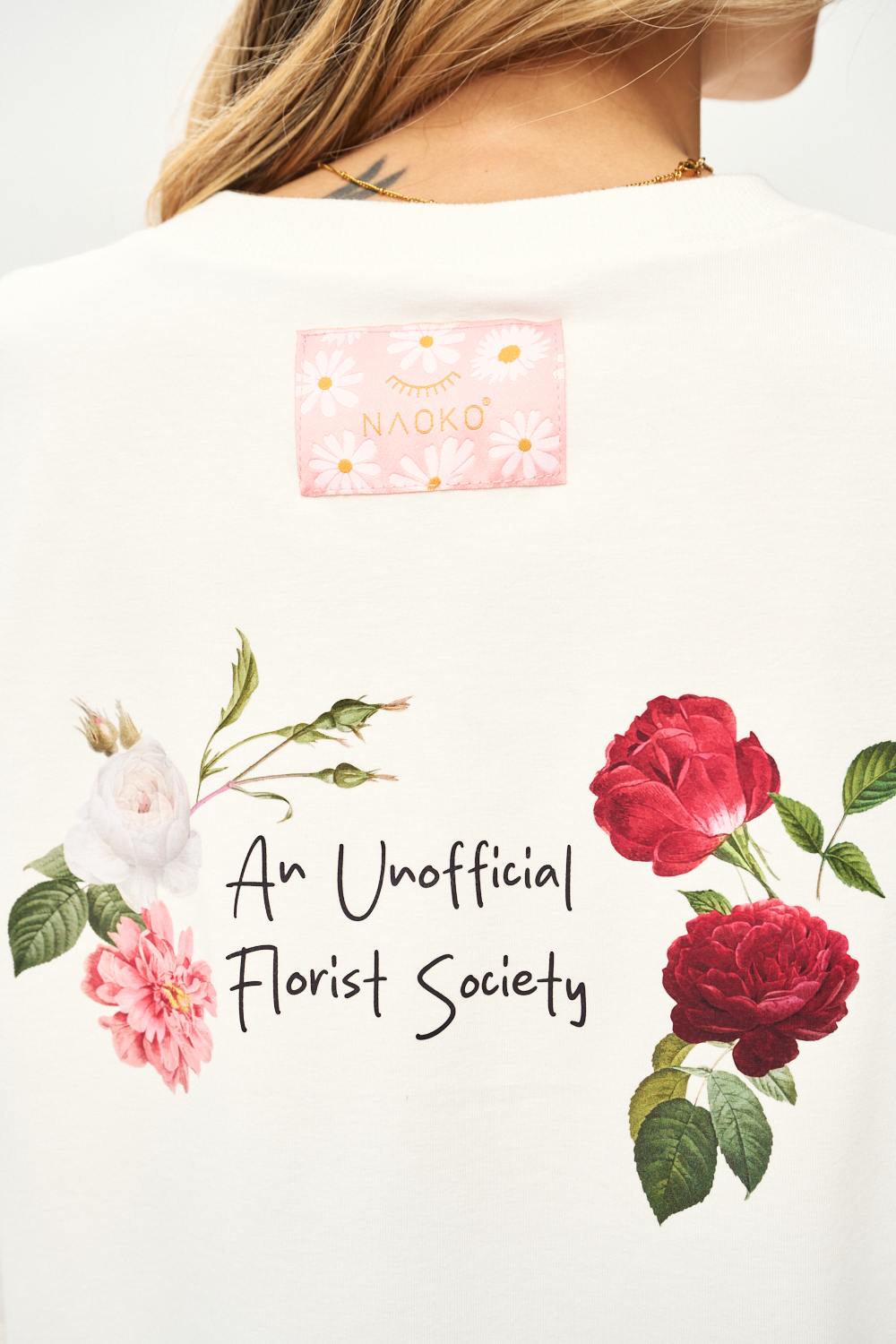 The Society Tee is perfect for lovers of nature and subtle design. Numerous graphics of wildflowers and handwritten inscriptions give it a vintage character, reminiscent of a herbarium full of memories.