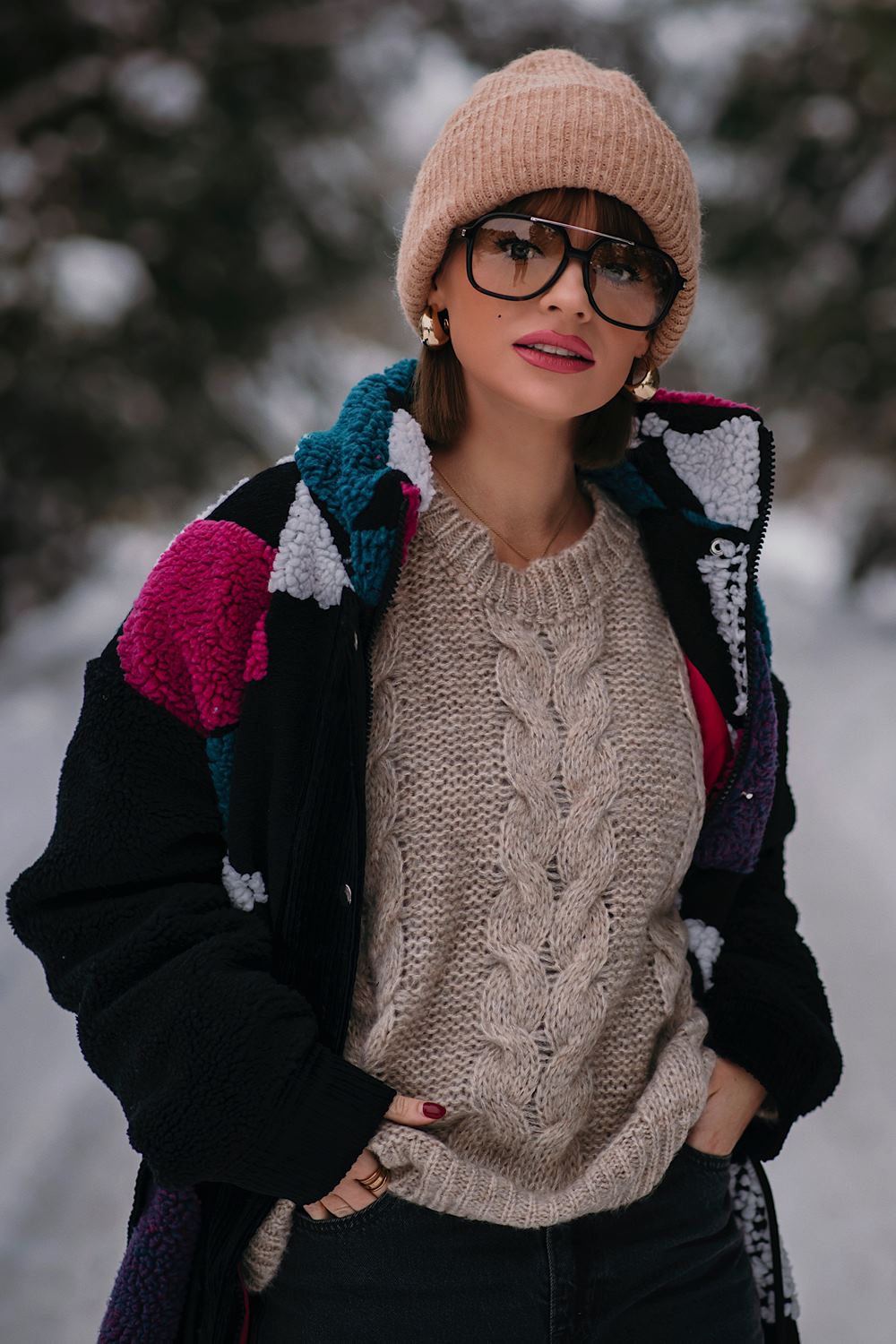 This winter coat will delight you with its teddy material, which is sure to add warmth to the cold days of the winter season. And thanks to its color accents - it will catch the eye and stand out from other dreary winter coats and jackets. It has a drawstring hem so you can adjust it to your figure. The coat is fastened with press studs and has pockets.