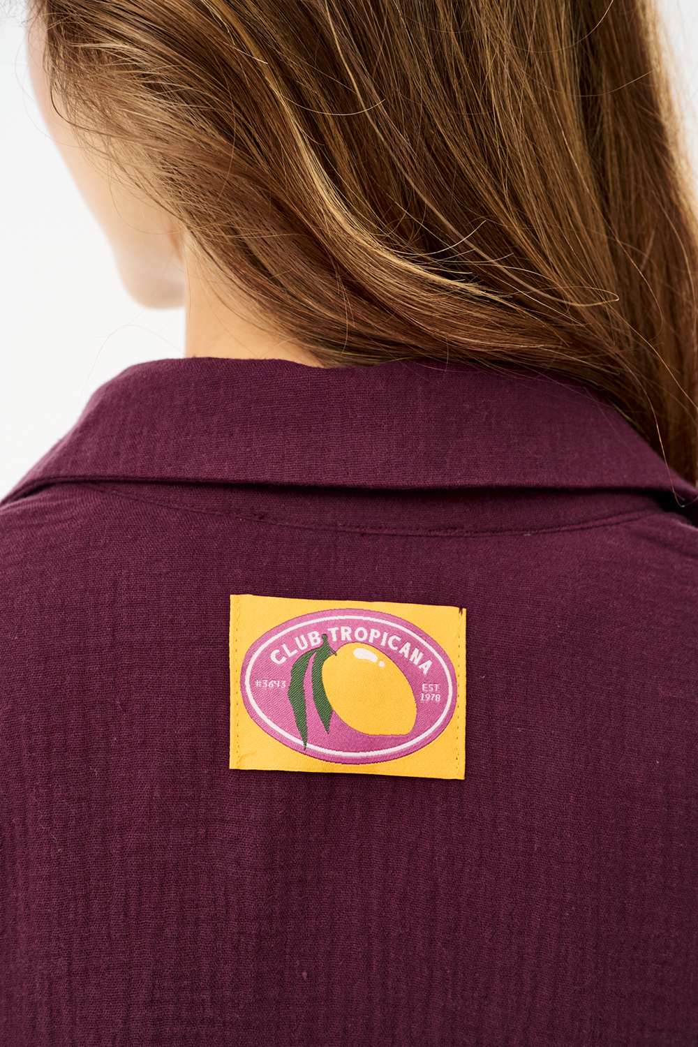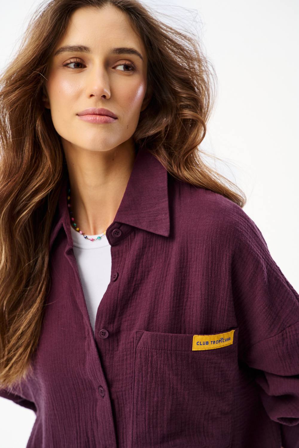 The Wild Kiss muslin shirt combines a relaxed, oversized fit with the incredibly soft texture of muslin. Its dark brown hue makes it an exceptionally versatile piece, while small details—like the colorful tags on the back—add a touch of uniqueness.