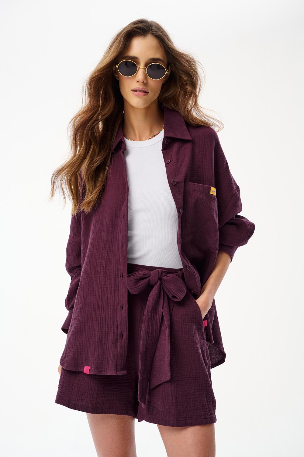 Comfort in an oversized style. Indispensable for travel and everyday wear. Wear it unbuttoned as a top, tied at the waist, or loosely tucked into pants. Muslin is a fabric you’ll love for its breathability and the fact that it doesn’t require ironing.
