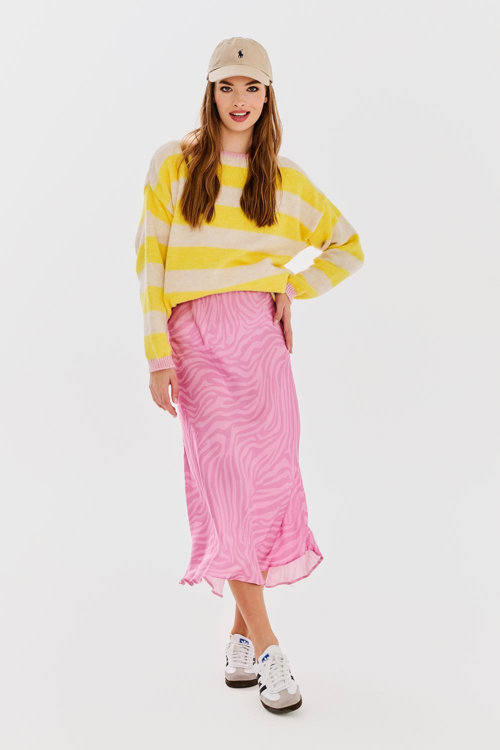 La falda Wild Melody es una propuesta que seguramente llamará la atención. Esta falda encanta con un estampado animal, añadiendo un encanto único. Su color rosa le da a todo el conjunto un toque fresco y delicado.