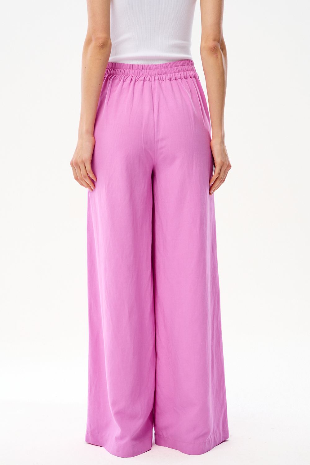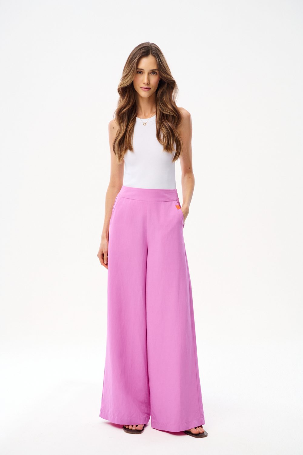 The Primavera wide-leg linen pants combine luxurious viscose with a touch of linen, giving them a beautiful sheen and breathability. The vibrant pink color catches the eye, while the wide palazzo cut lends the silhouette a light, modern chic.