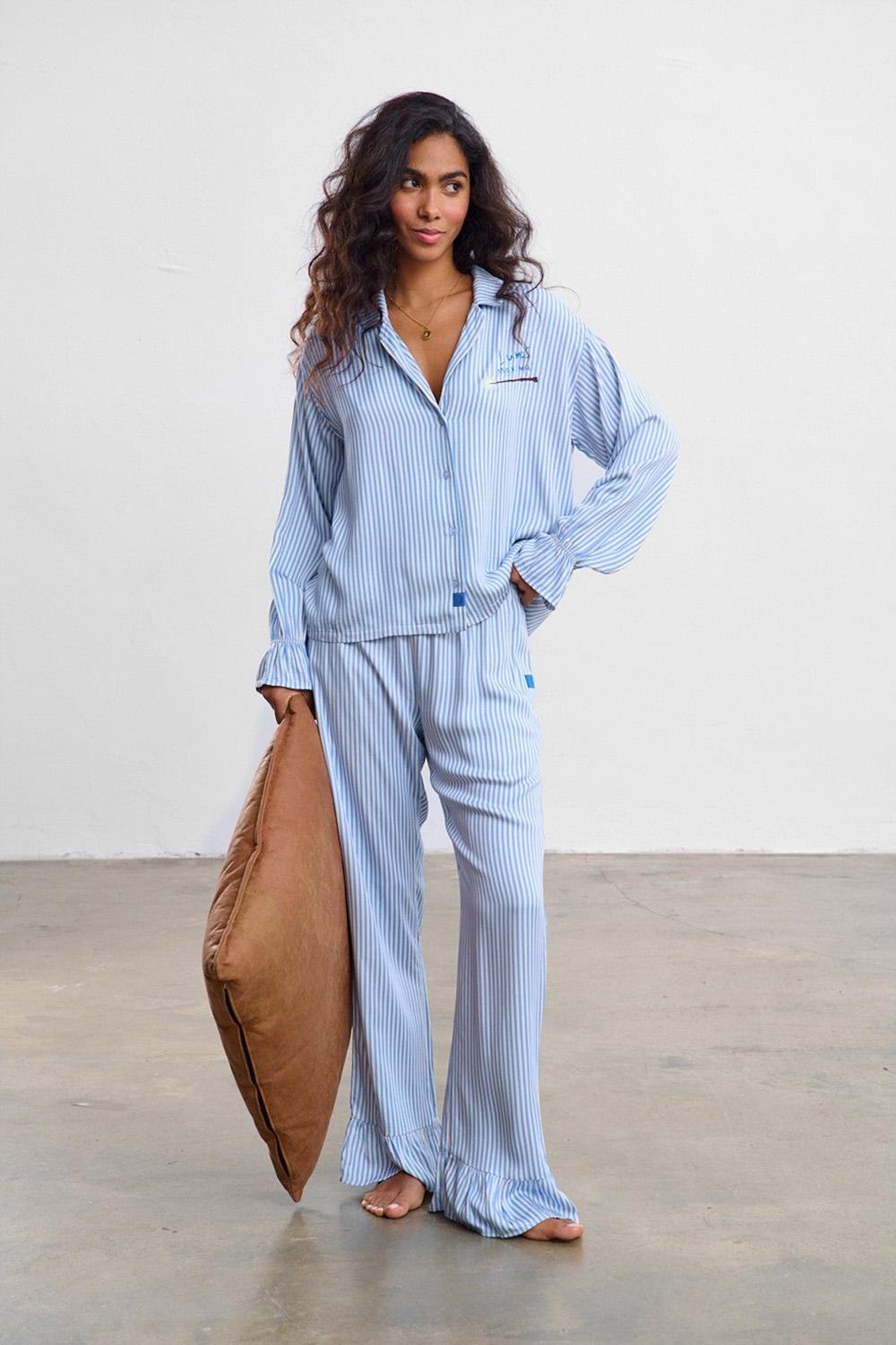 Pantalon de pyjama Lumos Maxima est le bas parfait à associer avec un haut. La coupe ample à jambes larges garantit un confort maximal pendant le sommeil. Confectionné dans la même viscose rayée et douce que le haut de pyjama, la taille élastique s’adapte à votre silhouette.