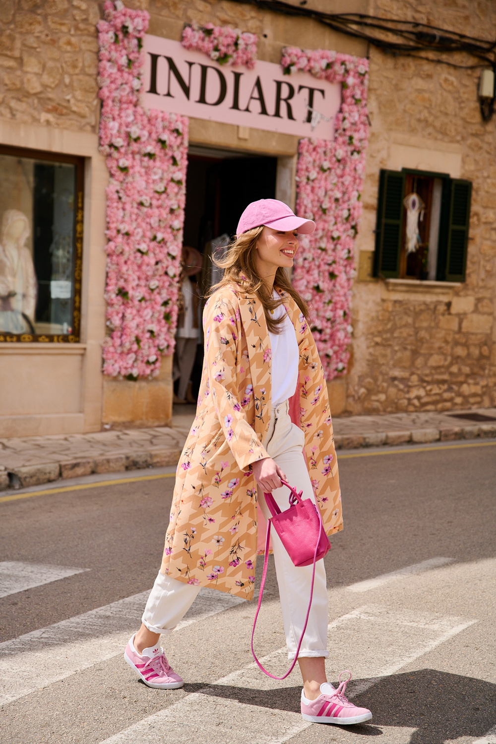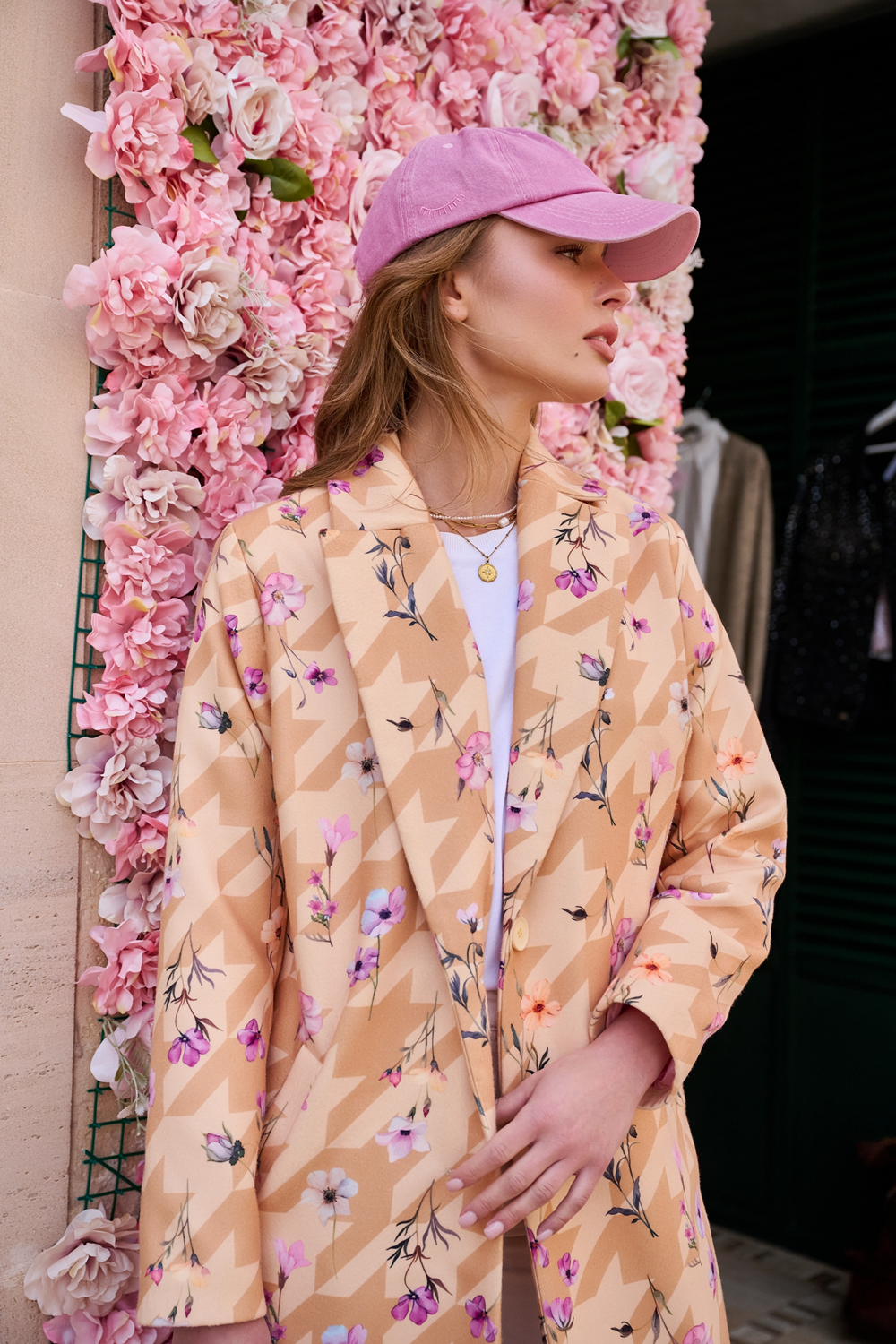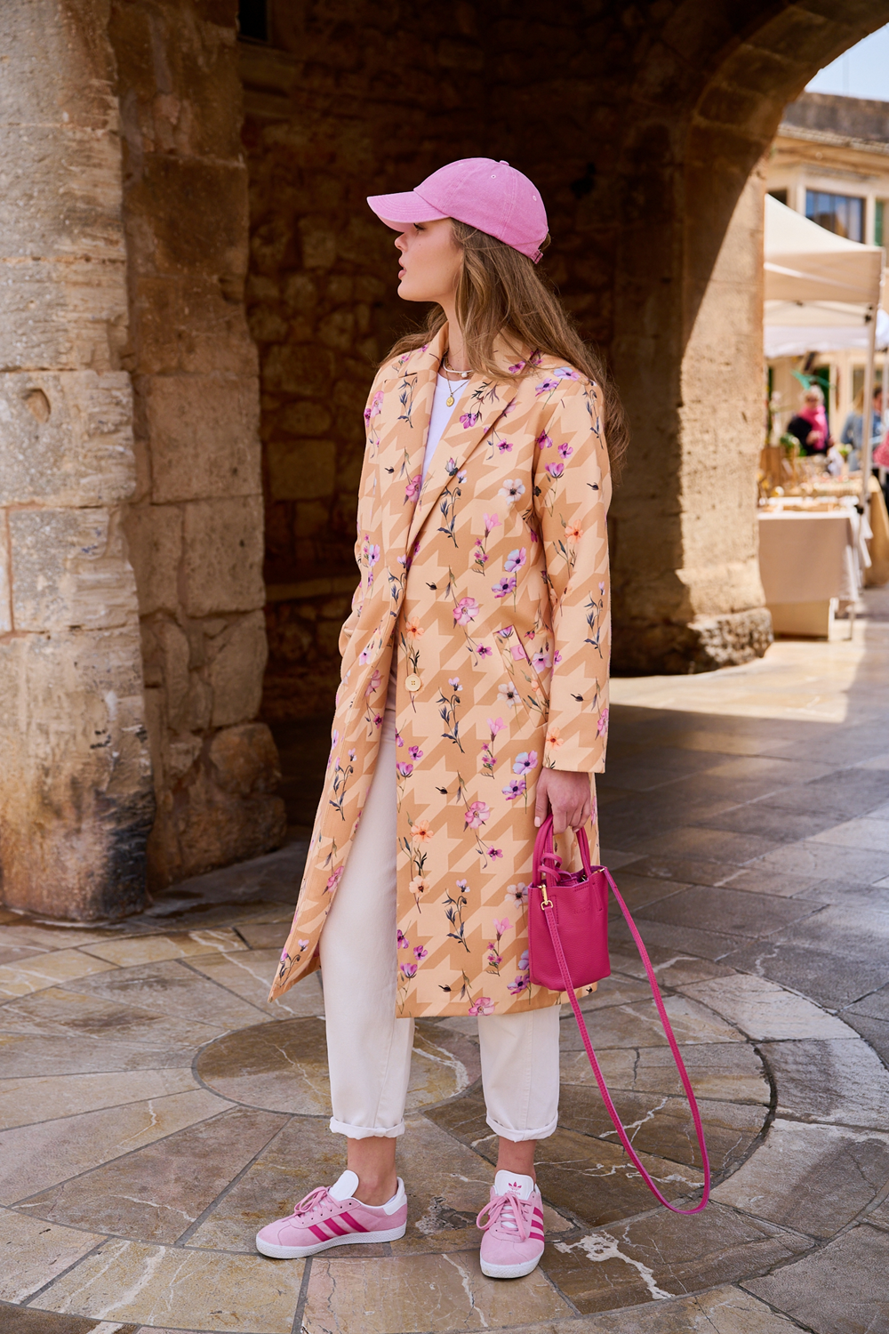 Il classico cappotto Blooming Soul è una combinazione di eleganza e romanticismo nella sua forma più bella. La base beige in un delicato motivo pepite è decorata con discrezione da accenti floreali, che aggiungono leggerezza e fascino femminile all’insieme. Questo cappotto porta una ventata di freschezza e fascino artistico allo stile quotidiano. Il taglio lungo con linea classica si adagia splendidamente sulla silhouette, offrendo comfort e un aspetto d’impatto. I bottoni doppi sottolineano il carattere elegante del modello, e i dettagli curati, come la fodera rosa, lo rendono ancora più speciale.