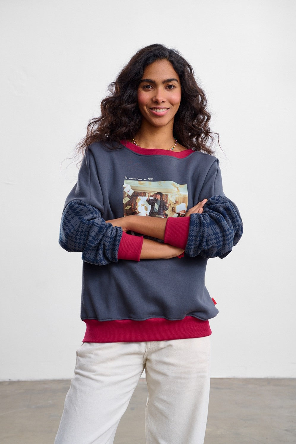 Dear Potter sweatshirt is a nostalgic journey to the world of wizardry. The gray front and back of the sweatshirt are paired with dark checkered sleeves, giving it a vintage, "dark academia" feel. Red cuffs add energy and echo the motif of letter seals.