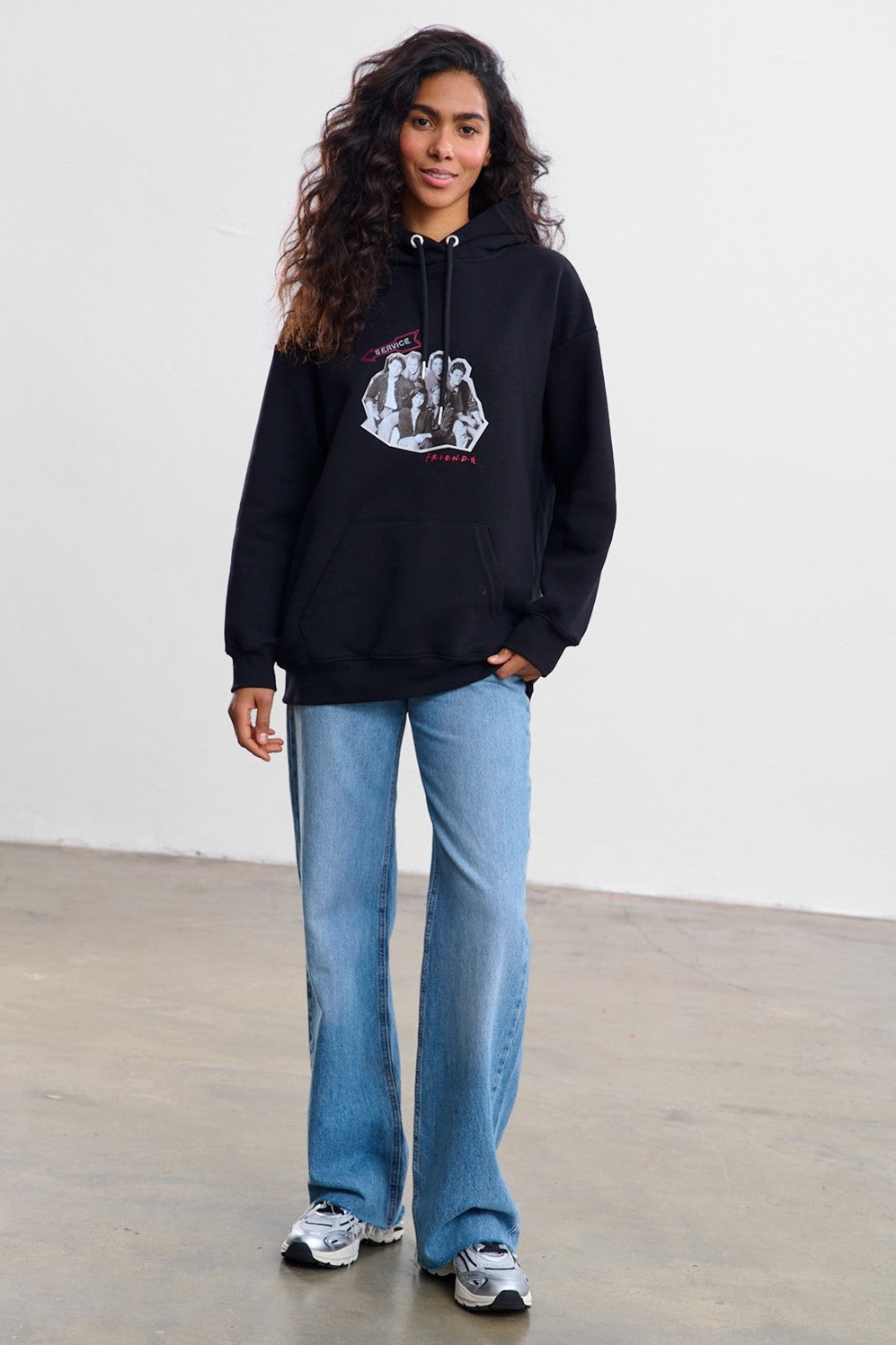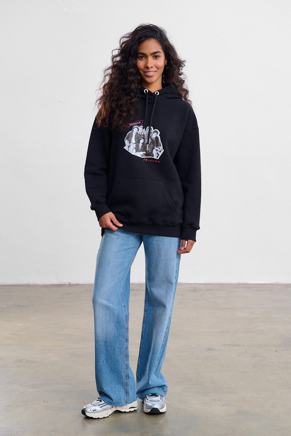 The Together Hoodie is an absolute must-have for any "Friends" fan. The deep black of the hoodie provides the perfect backdrop for the nostalgic graphics. The front features a black-and-white photo of the six friends, adorned with red accents.