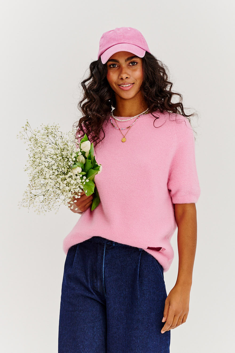 Il maglione Candy Crush a maniche corte è l'essenza della dolce leggerezza e del fascino fanciullesco. La sua texture soffice avvolge come la nuvola più delicata, e il rosa pastello dona a ogni look un tocco di fascino sottile. Questa è una proposta per chi ama giocare con la moda e unire comfort e stile femminile. Grazie all'aggiunta di alpaca e lana, questo maglione ti terrà al caldo nei giorni freddi!
