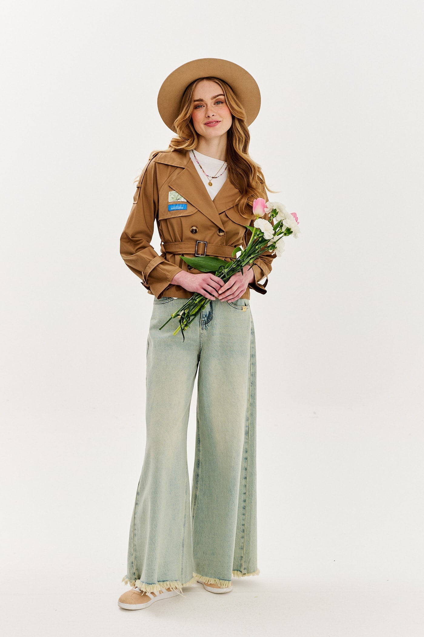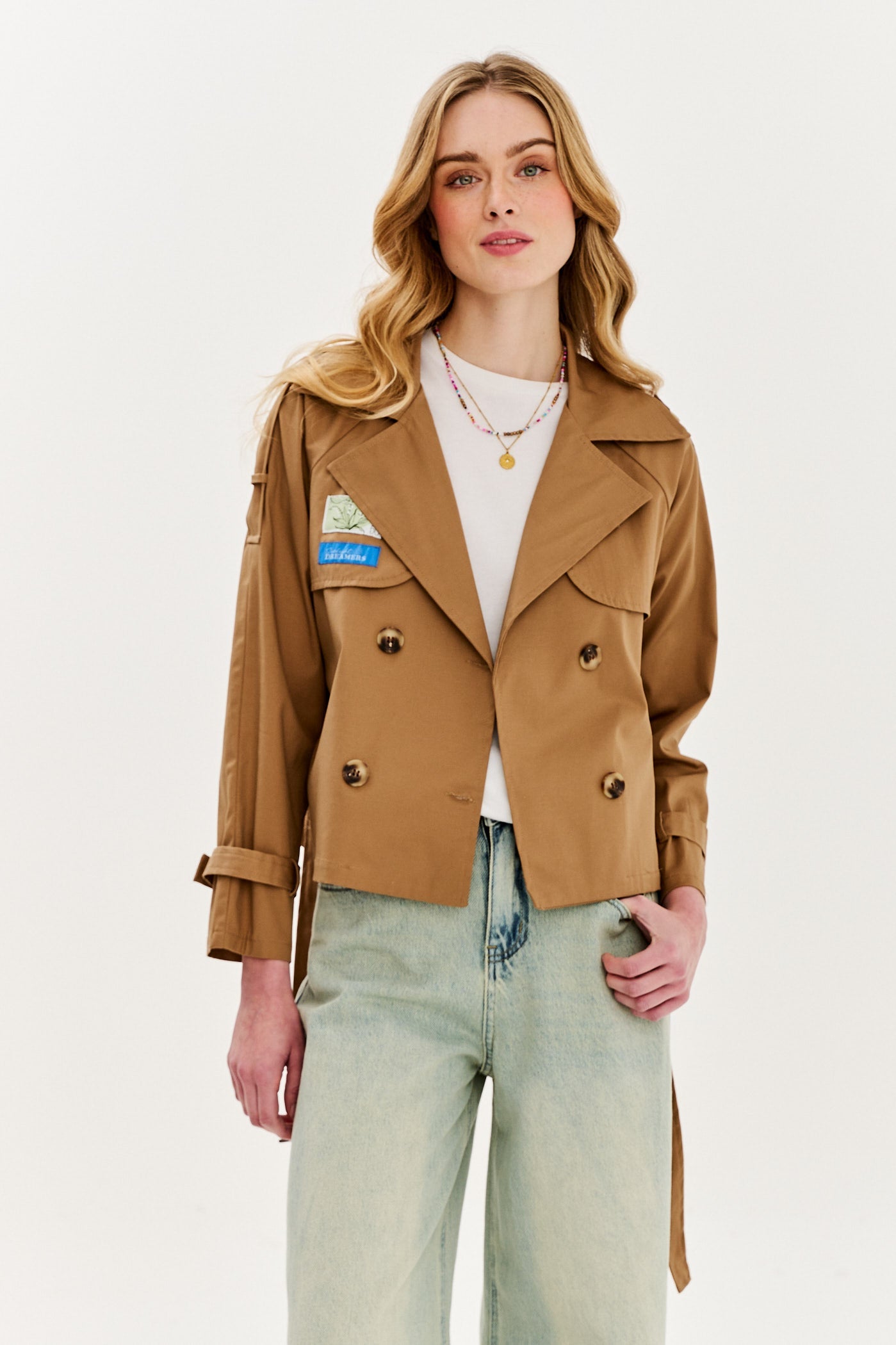 Il trench corto Classic Bloom è pensato per le donne che apprezzano l'eleganza, ma non temono i dettagli sottili che aggiungono carattere. Questo trench corto in una calda tonalità di marrone unisce un taglio classico ad accenti moderni, creando un capo senza tempo per le giornate primaverili.