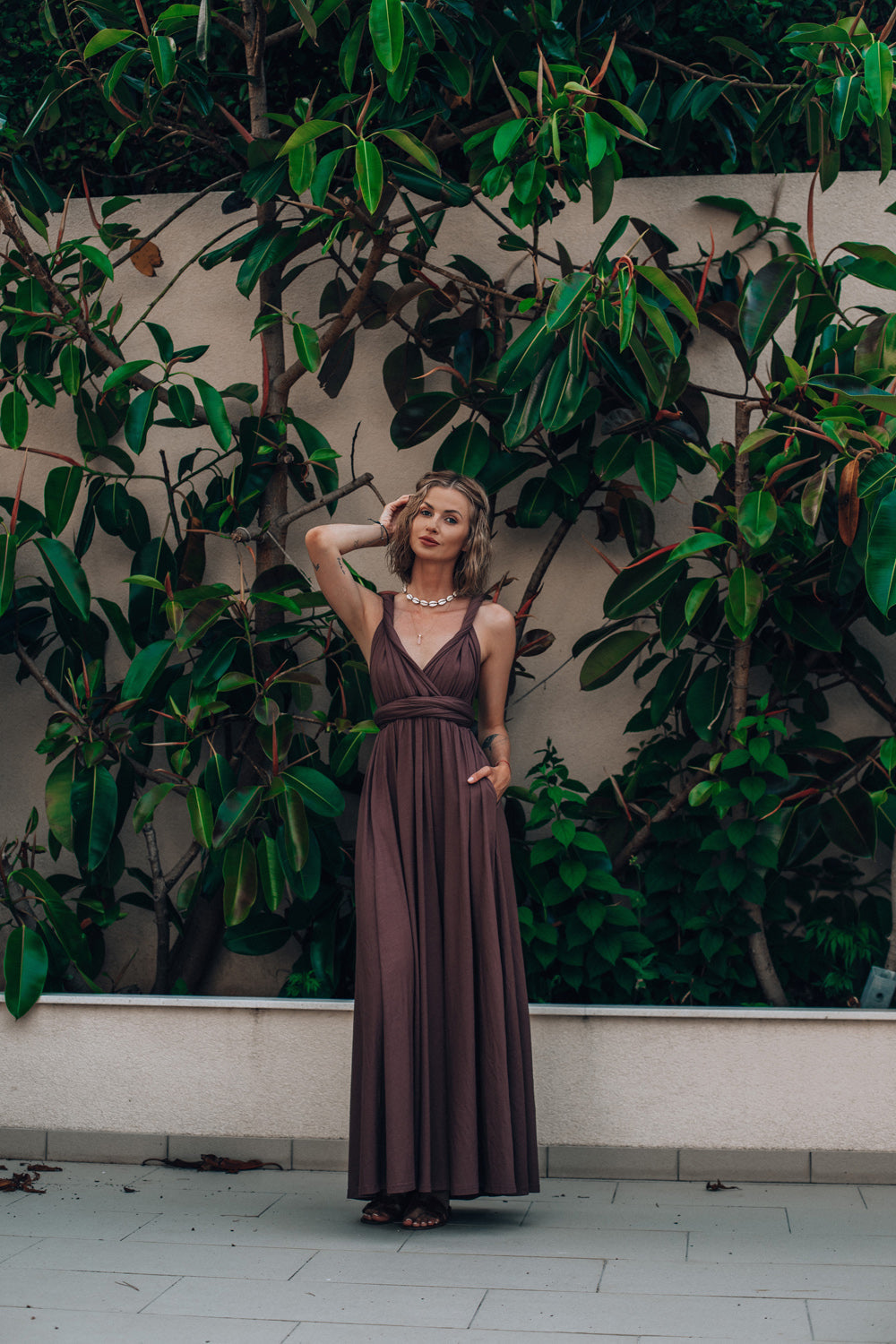Korcula infinity maxi dress - ecco un abito che ti offre infinite possibilità di styling. Ti permette di annodare liberamente le fasce, creando ogni volta un taglio unico. Le lunghe bretelle ti consentono di adattare l'abito alla tua figura. Annodale - in vita, sui fianchi o sotto il seno, per adattarlo al meglio alla tua figura e al tuo stile. Il tessuto arioso e delicato ondeggerà dolcemente ad ogni tuo movimento, lasciando un'impressione indimenticabile.