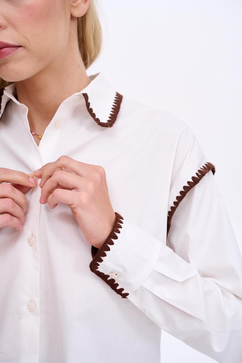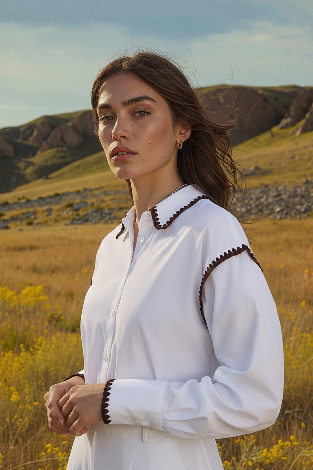 La camicia Pure Intention è la quintessenza dell'eleganza senza sforzo. Il suo colore bianco universale è arricchito da uno slogan ricamato che ti motiva a rallentare e apprezzare il momento. Le delicate cuciture rosse su polsini e spalle sono un dettaglio che rende questo modello unico.