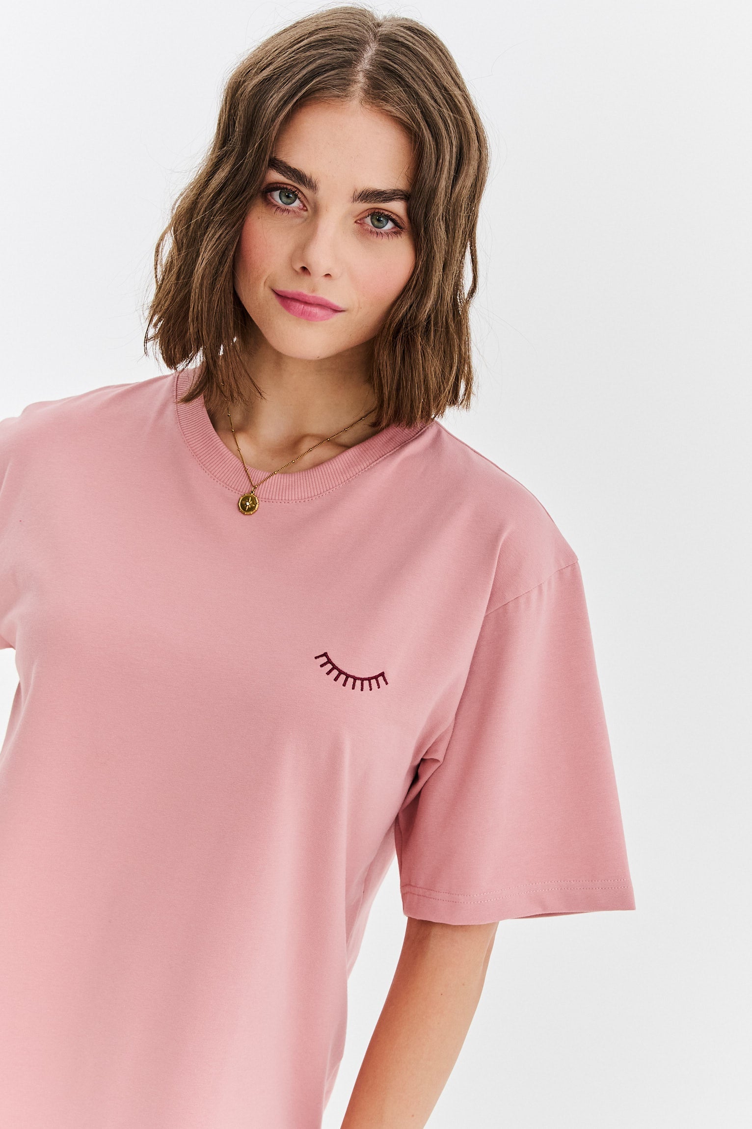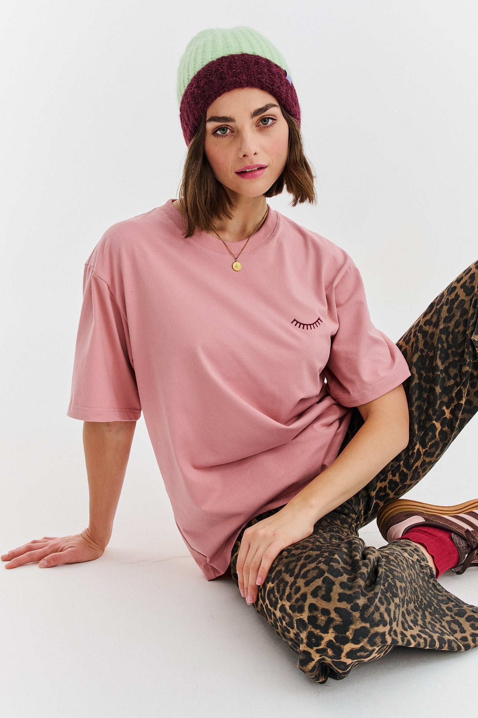 Il ricamo a forma di ciglia, caratteristico del brand, è un dettaglio discreto ma riconoscibile che rende la maglietta unica. Indossala con jeans, gonne o sotto una giacca – la T-shirt Rosy Revolution si adatta a qualsiasi situazione, aggiungendo un tocco leggero e fresco al tuo outfit.