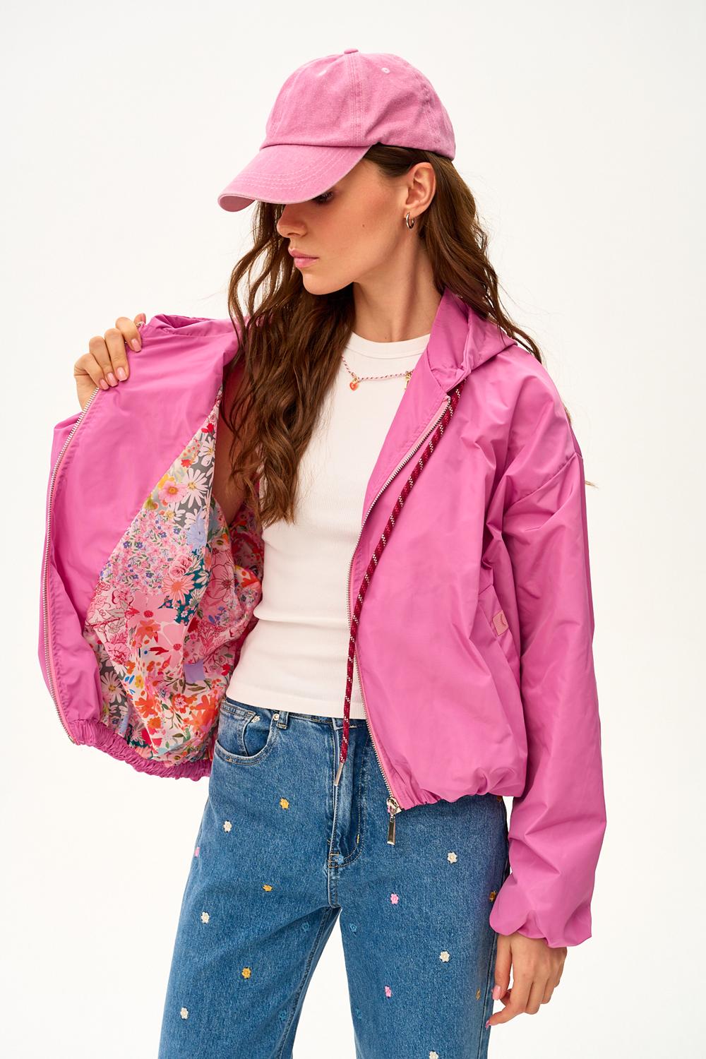 La parka corta con cappuccio Dahlia Crush unisce funzionalità e l’energia dei fiori primaverili. Il suo colore rosa intenso e il taglio raffinato fanno brillare anche le giornate più grigie. L’interno presenta una stampa floreale originale, segno distintivo della collezione Florist Society.