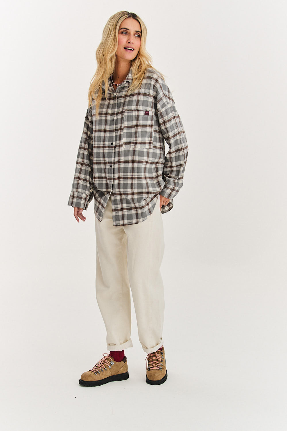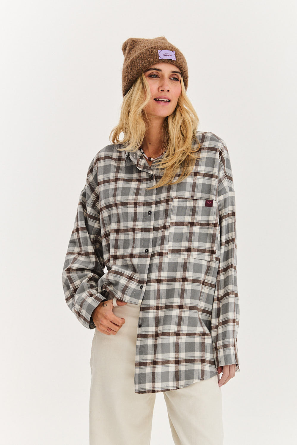 La camicia di flanella Tender Silence è un must-have in ogni guardaroba autunno-invernale. Il modello della collezione "Retro Ethno / Nomad Soul" conquista con la morbidezza del 100% cotone e il motivo a quadri senza tempo. La palette di colori tenui che unisce marroni, grigi e beige è stata ravvivata da una sottile linea bordeaux.