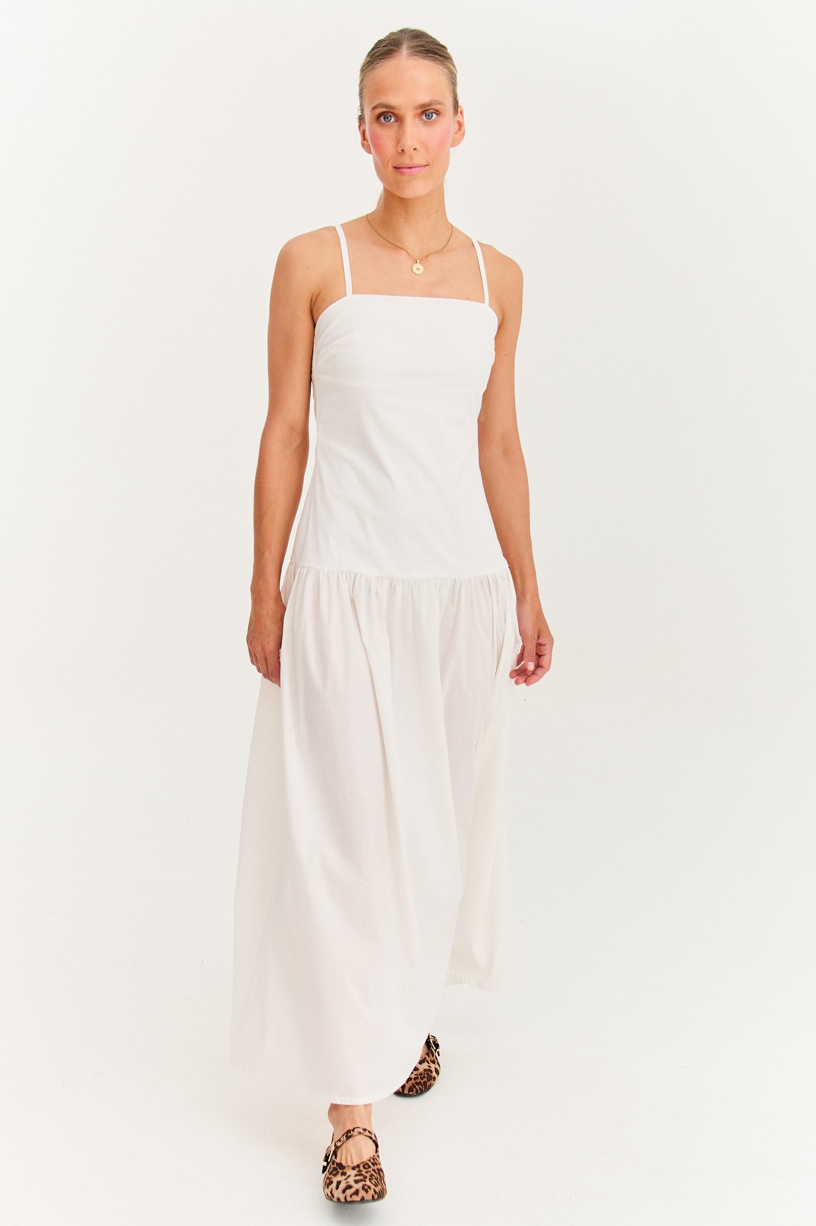 Day Whisper strapless maxi-jurk is een minimalistisch juweeltje dat betovert met zijn lichtheid en subtiele charme. Met de rechte halslijn, delicate spaghettibandjes en vloeiende maxi-lengte is deze jurk een tijdloos stuk, gemaakt voor zomerse dagen. Gemaakt van ademende katoen met een vleugje stretch, biedt het de hele dag comfort en bewegingsvrijheid.