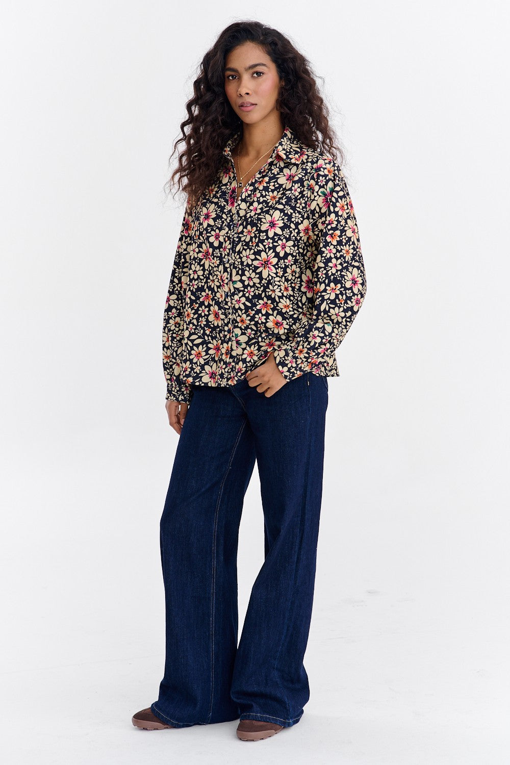 The After the Rain Corduroy Shirt is the perfect choice for cooler days. Made of soft, printed corduroy, it will wrap you in warmth and add a unique charm to your outfit. The floral pattern in shades of pink and beige contrasts beautifully against the dark background.