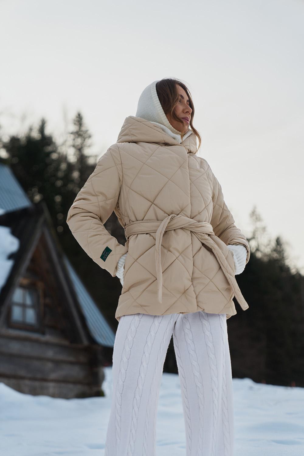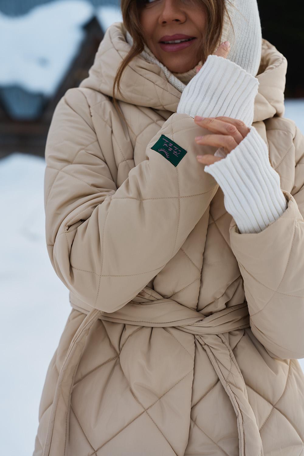 Anabelle Desert Moth Jacket is the perfect combination of classics and trends. This beige quilted coat with a robe cut is synonymous with comfort. The tie at the waist allows you to fit it perfectly to your figure, and the double-breasted button fastening adds a chic touch.