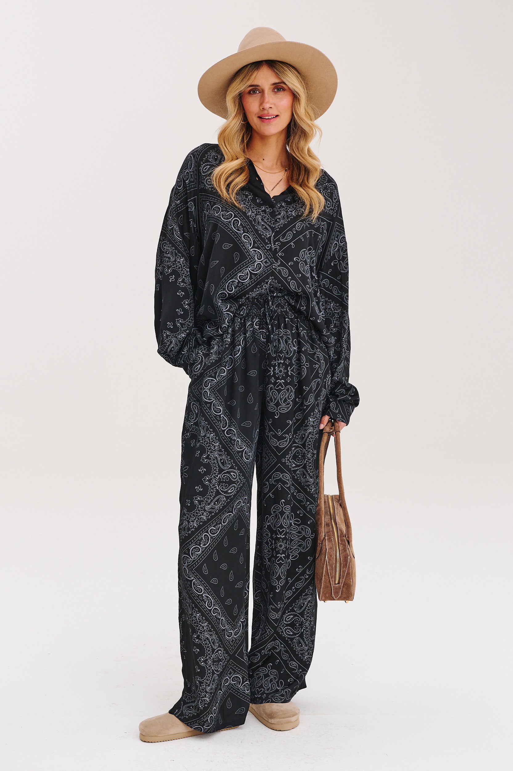 Thanks to its slightly oversize cut with a lowered shoulder line, the Bandana Fever shirt will work both in an elegant edition with a fitted skirt and in a more casual version with jeans. Wear it solo or as part of a set - always with confidence.