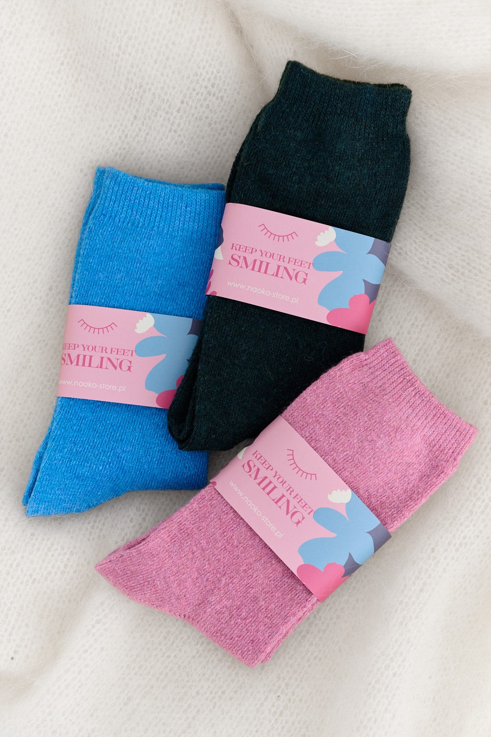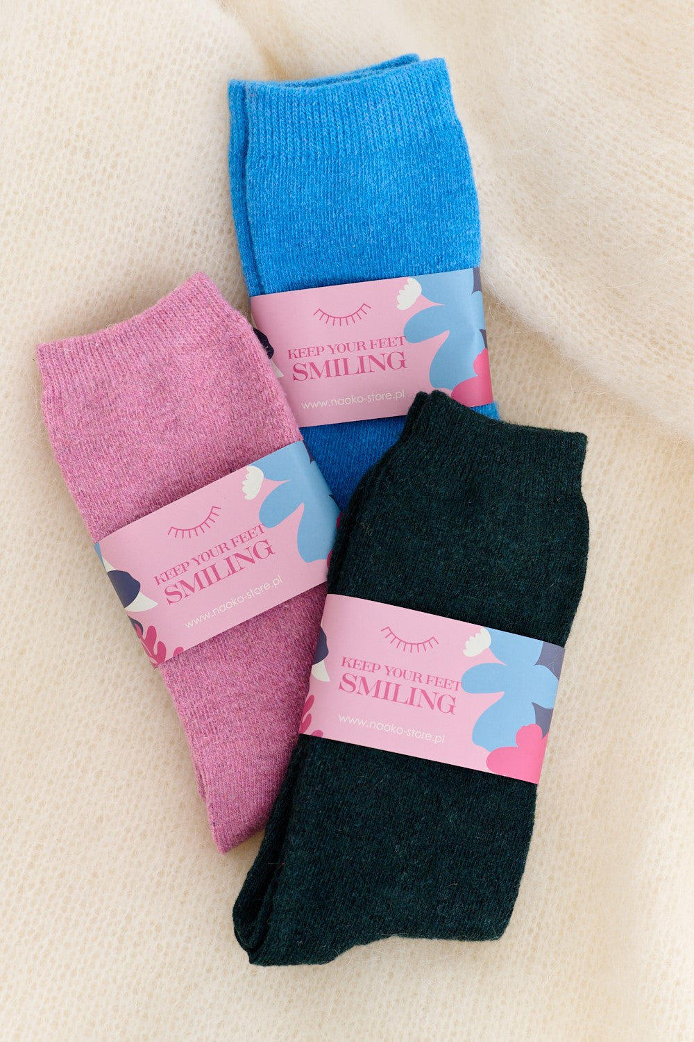 The Barefoot Club Wool Sock Set is your ultimate comfort solution on cold days. In this charming box, you'll find three pairs of smooth socks, each in a different, vibrant color, that will liven up your fall/winter wardrobe.
