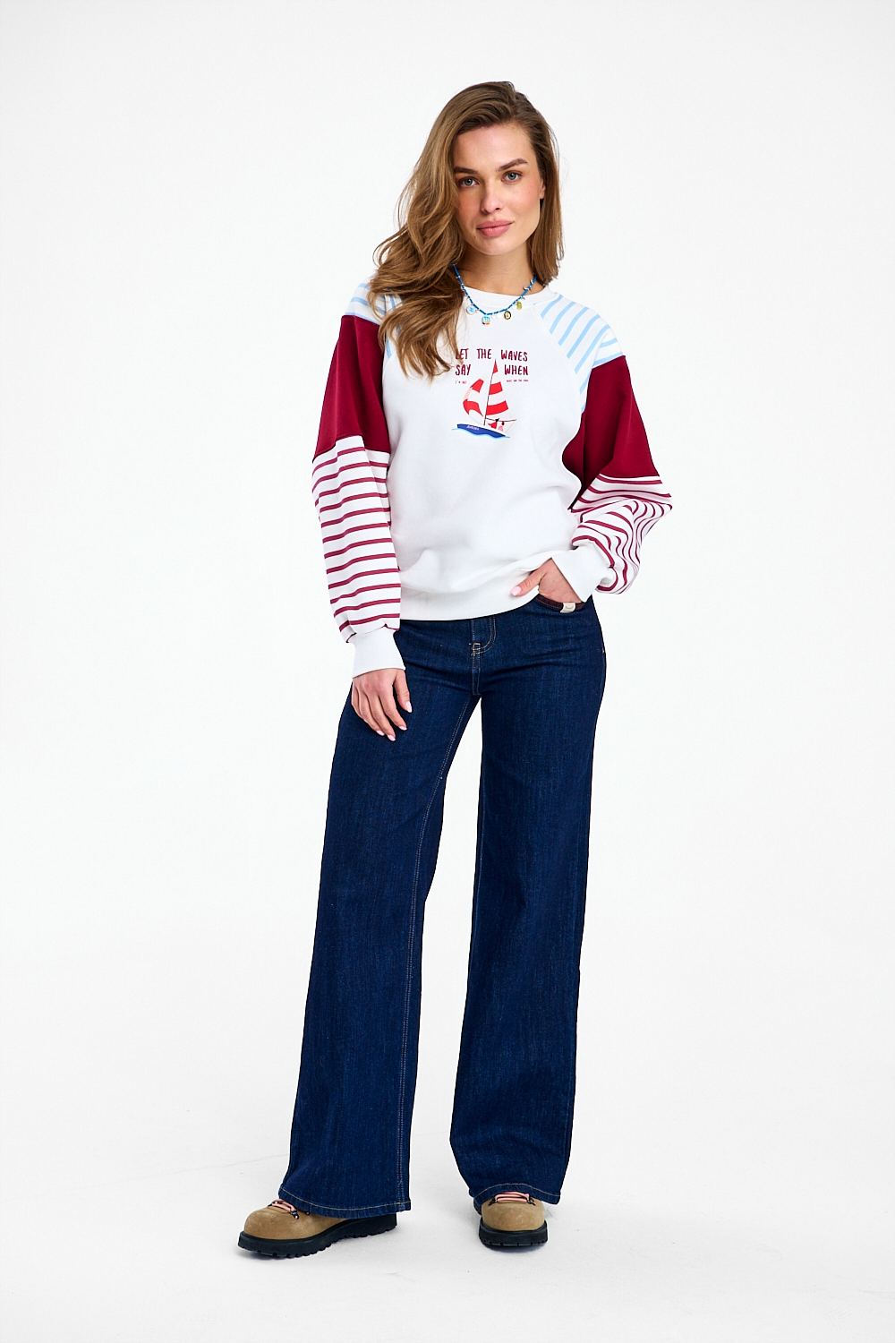 Let The Waves sweatshirt is a modern take on nautical style. It features a classic combination of white and navy, stripes, or a wave-themed graphic. Made of high-quality knit fabric, the sweatshirt is soft and breathable, perfect for changeable weather. The loose fit allows for unrestricted movement.