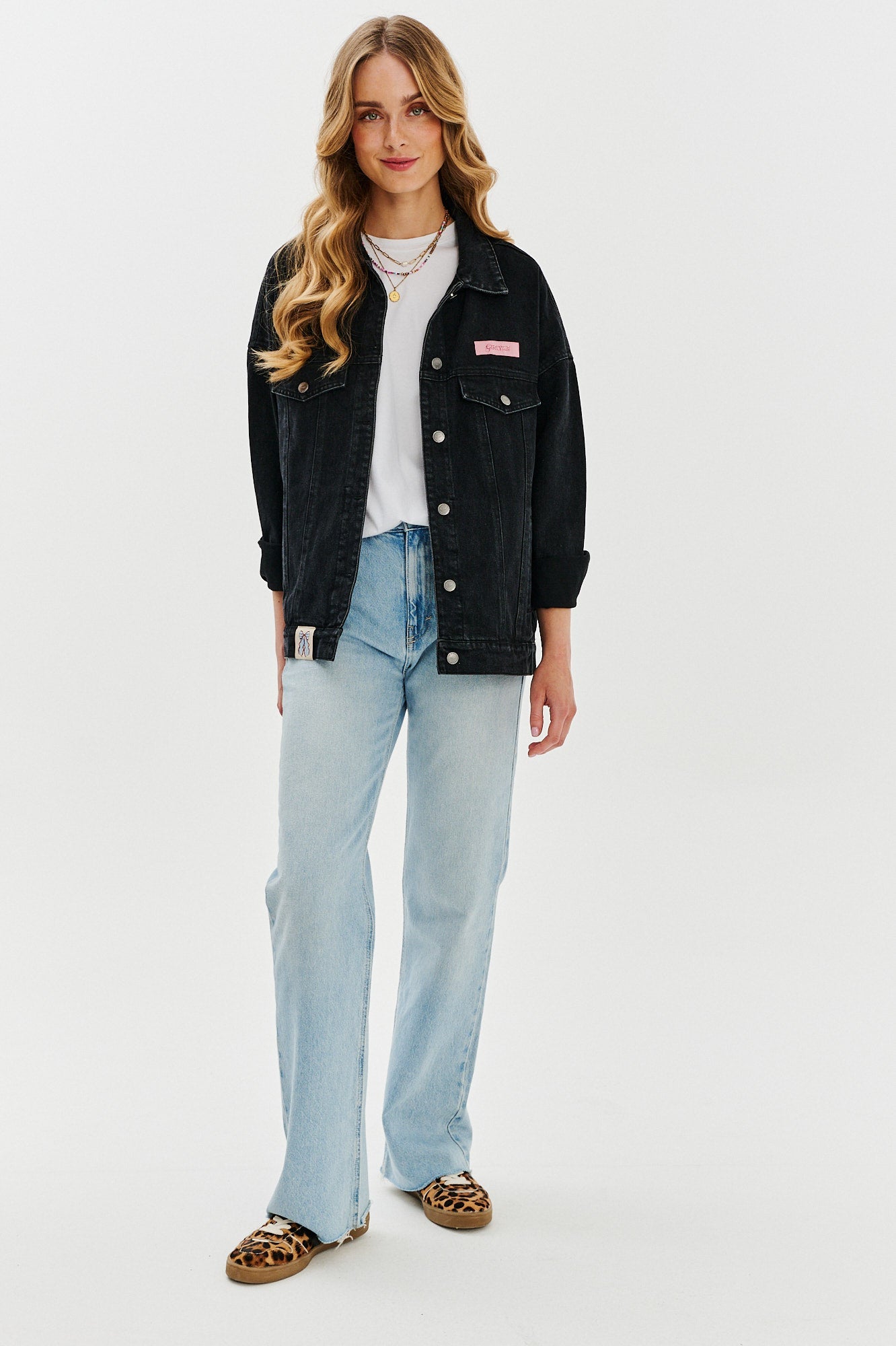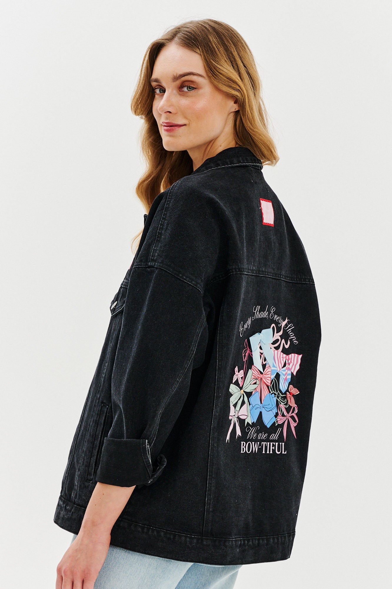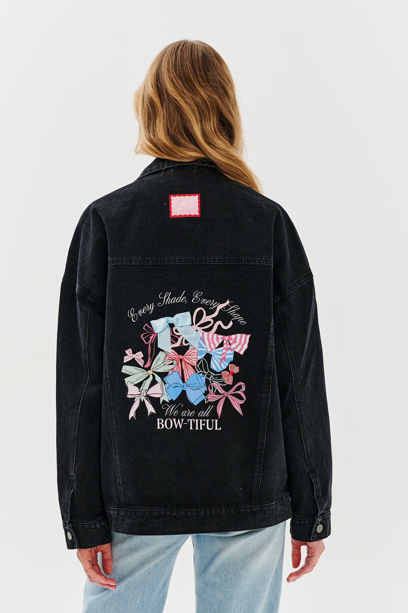 The iconic cut of the denim jacket in a new, girly version. Bow-Tiful denim jacket is a design that combines rebelliousness with the charm of bow-tiful - sewn with the utmost attention to detail. The back of the jacket is decorated with a multicolored print with the message “We are all bow-tiful”, which attracts glances and adds confidence.