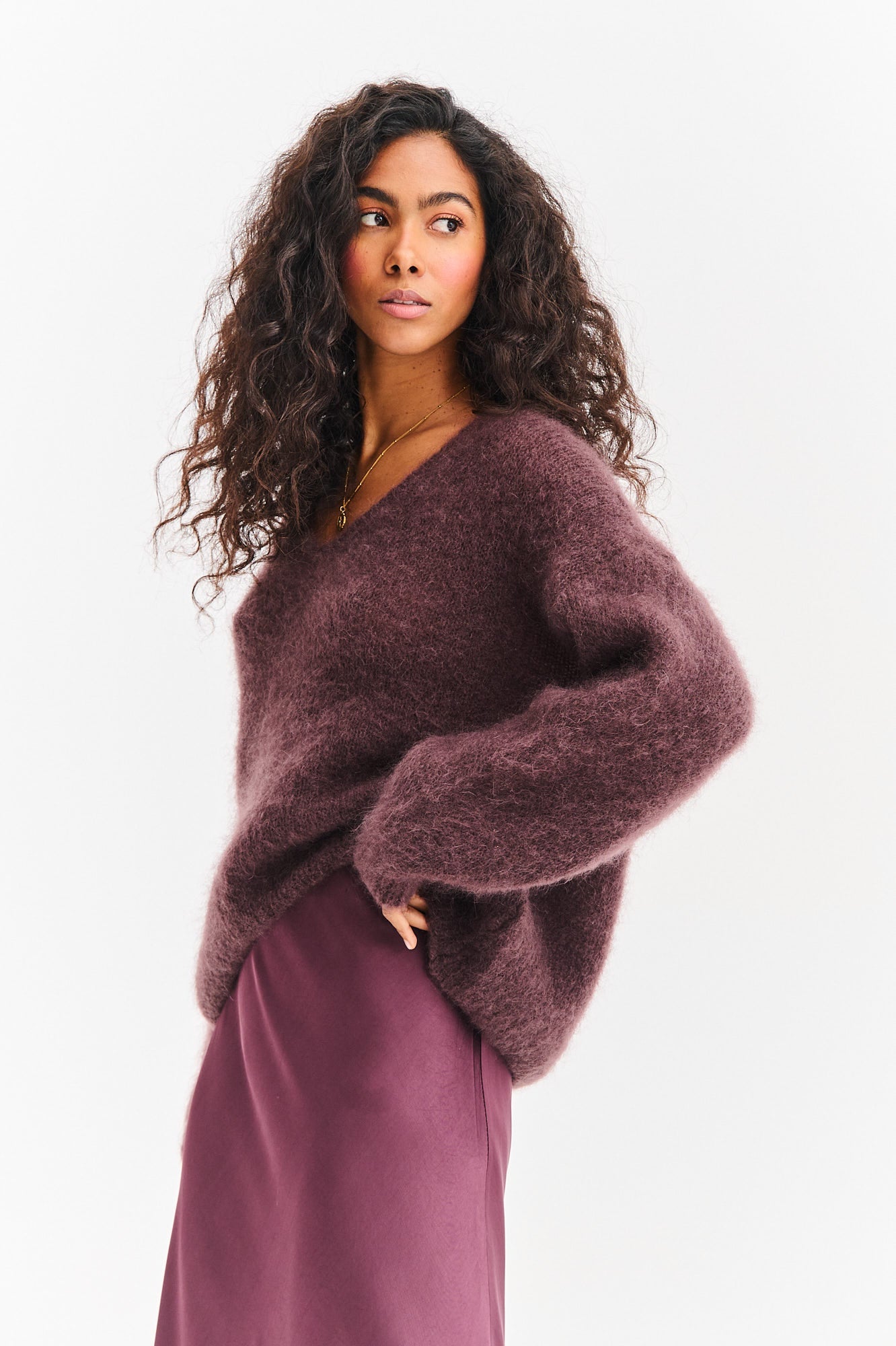Made from a luxurious blend with mohair, the sweater is extremely soft and pleasant to the touch, and warm at the same time. The classic v-neck neckline and relaxed fit make it a versatile piece - perfect with both jeans and an elegant skirt.