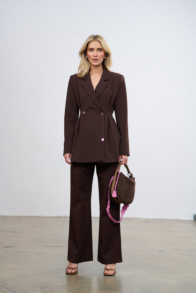 Wear it with matching trousers to create a suit, or throw it over a flowing dress to break up its lightness. Brown Muse is perfect for any occasion where you want to look impeccable and stylish. It's a classic with a modern twist.