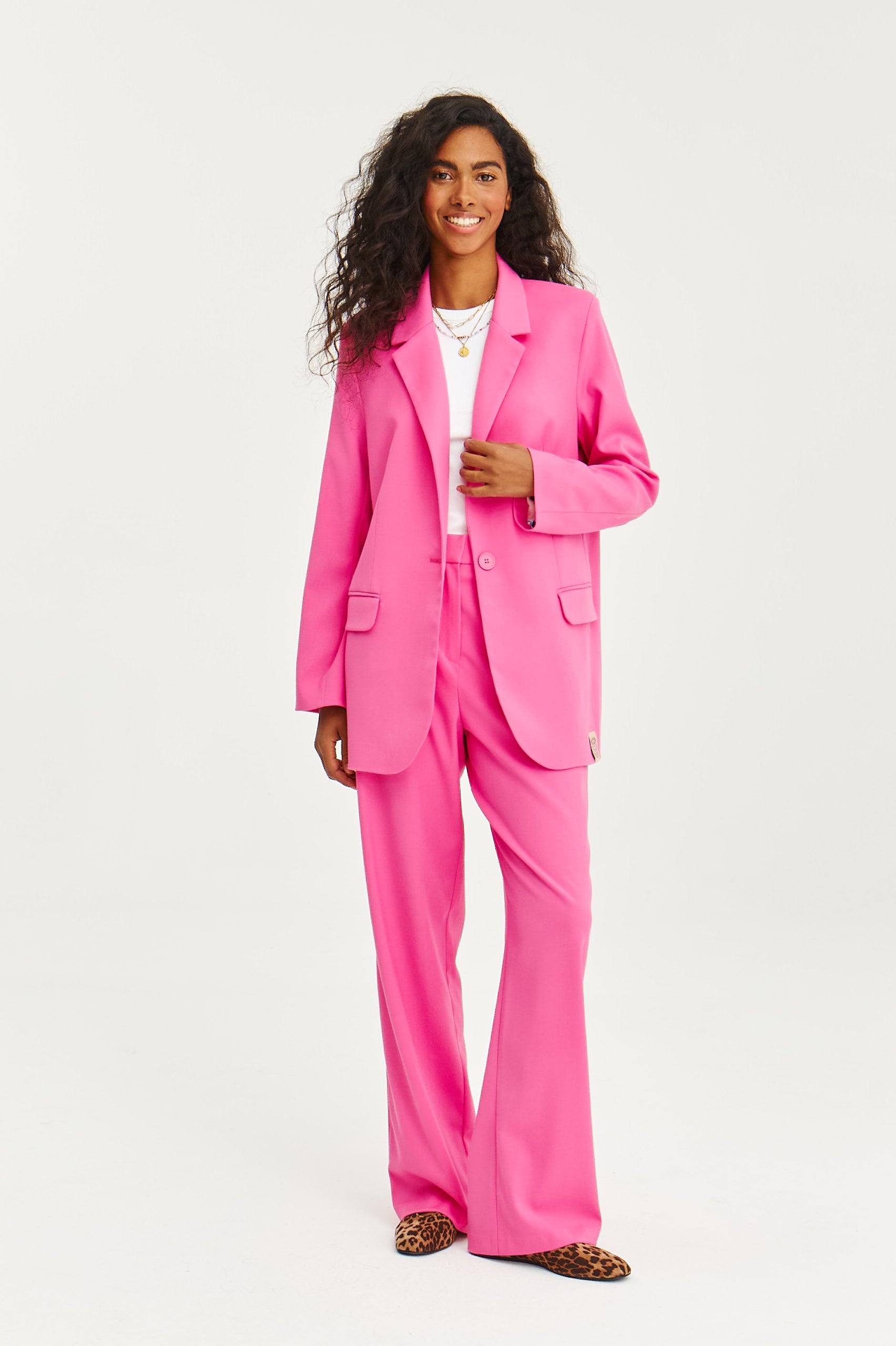 Bubblegum Attitude jacket is more than a classic - it's a style manifesto with a girly twist. Intense rubber-pink shade attracts the eyes, and the inner lining with a patchwork pattern reveals that you like fashion surprises.