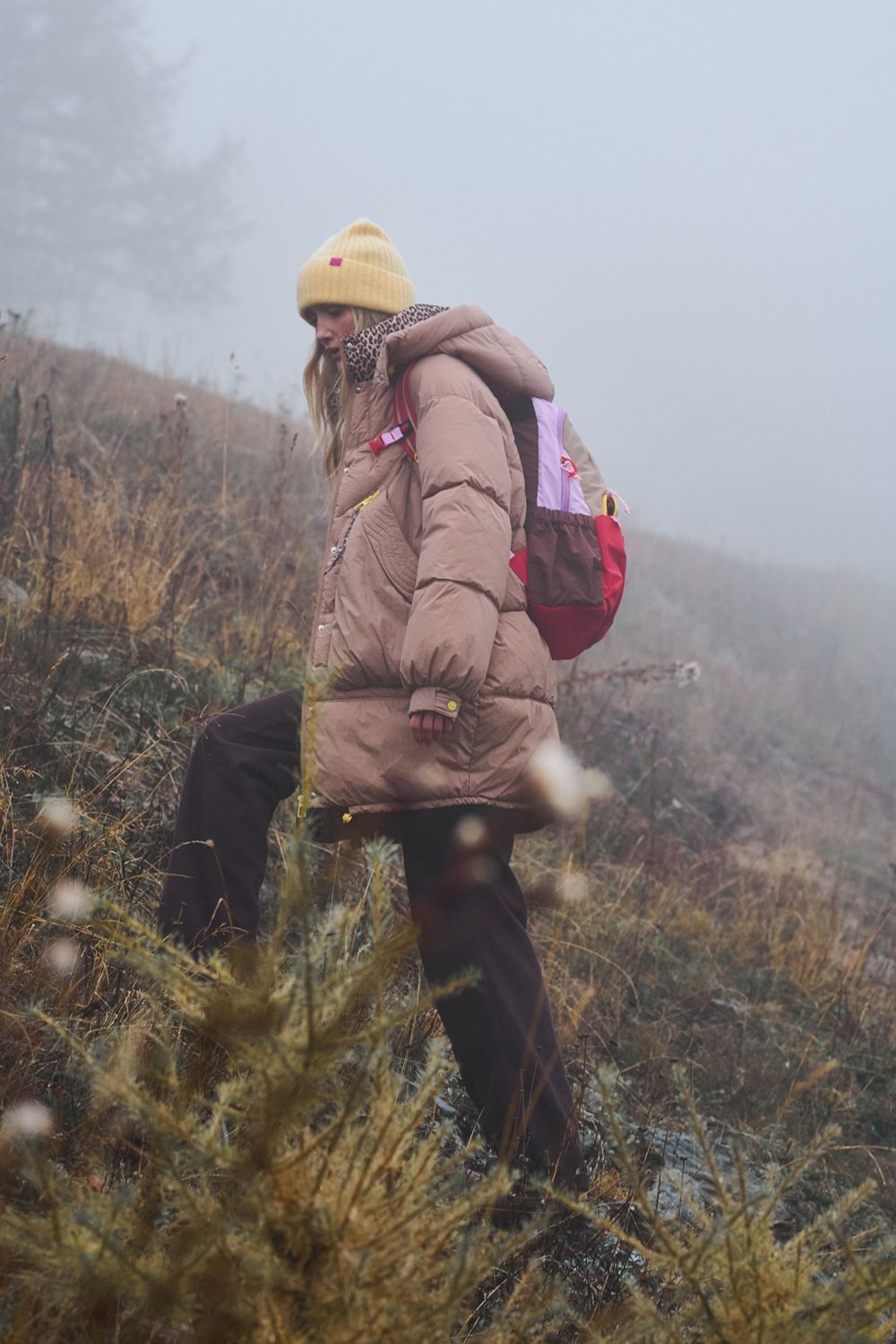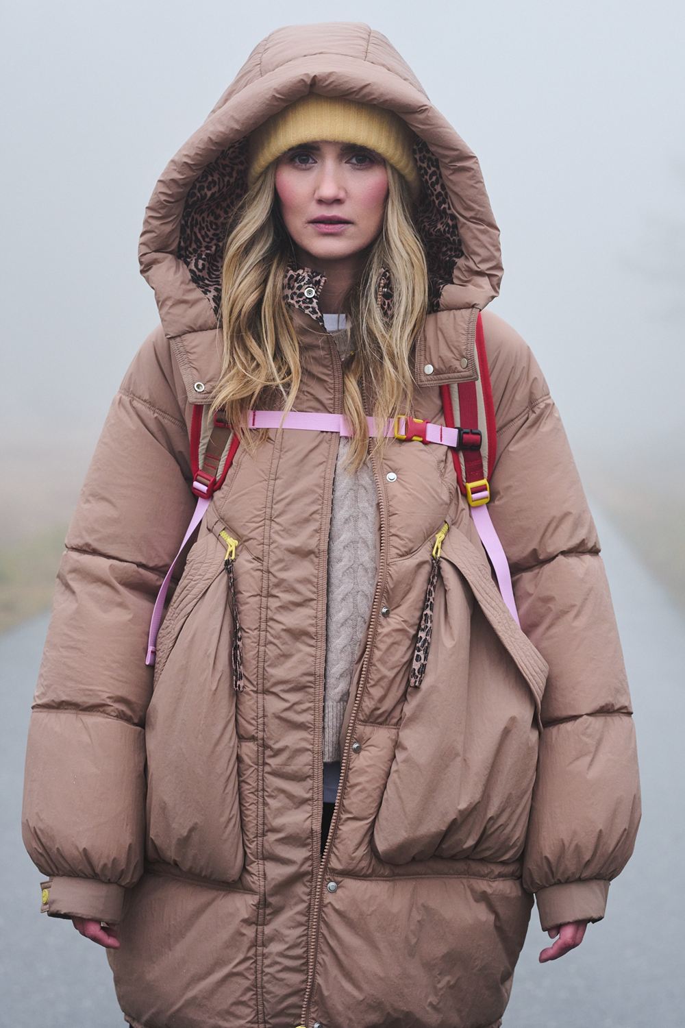 The generous "cloud" cut provides unparalleled comfort and warmth. You'll find the leopard pattern on the panel along the main zipper, inside the spacious hood and as a detail at the pockets. It's the perfect combination of comfort and the hottest trends.