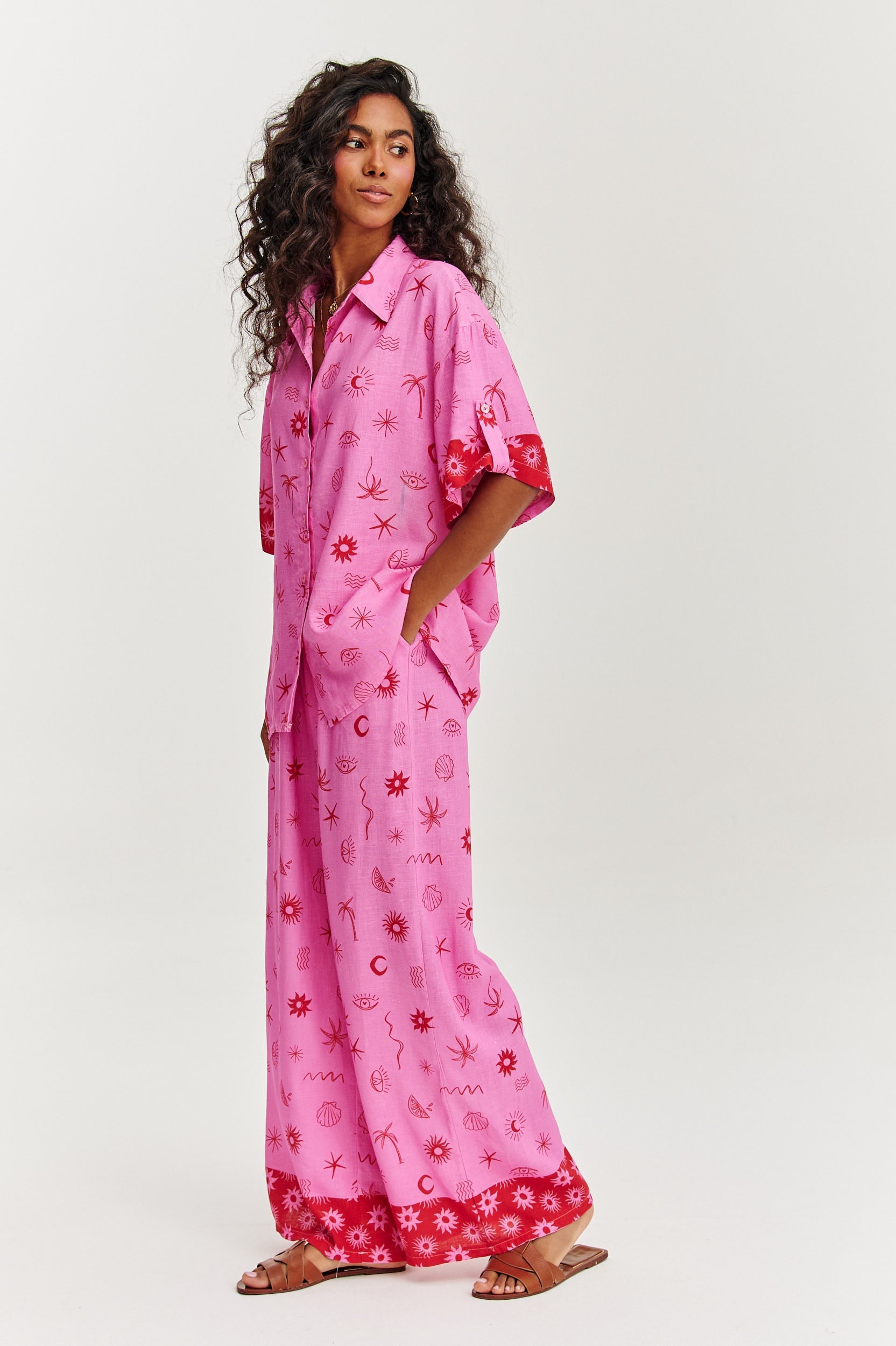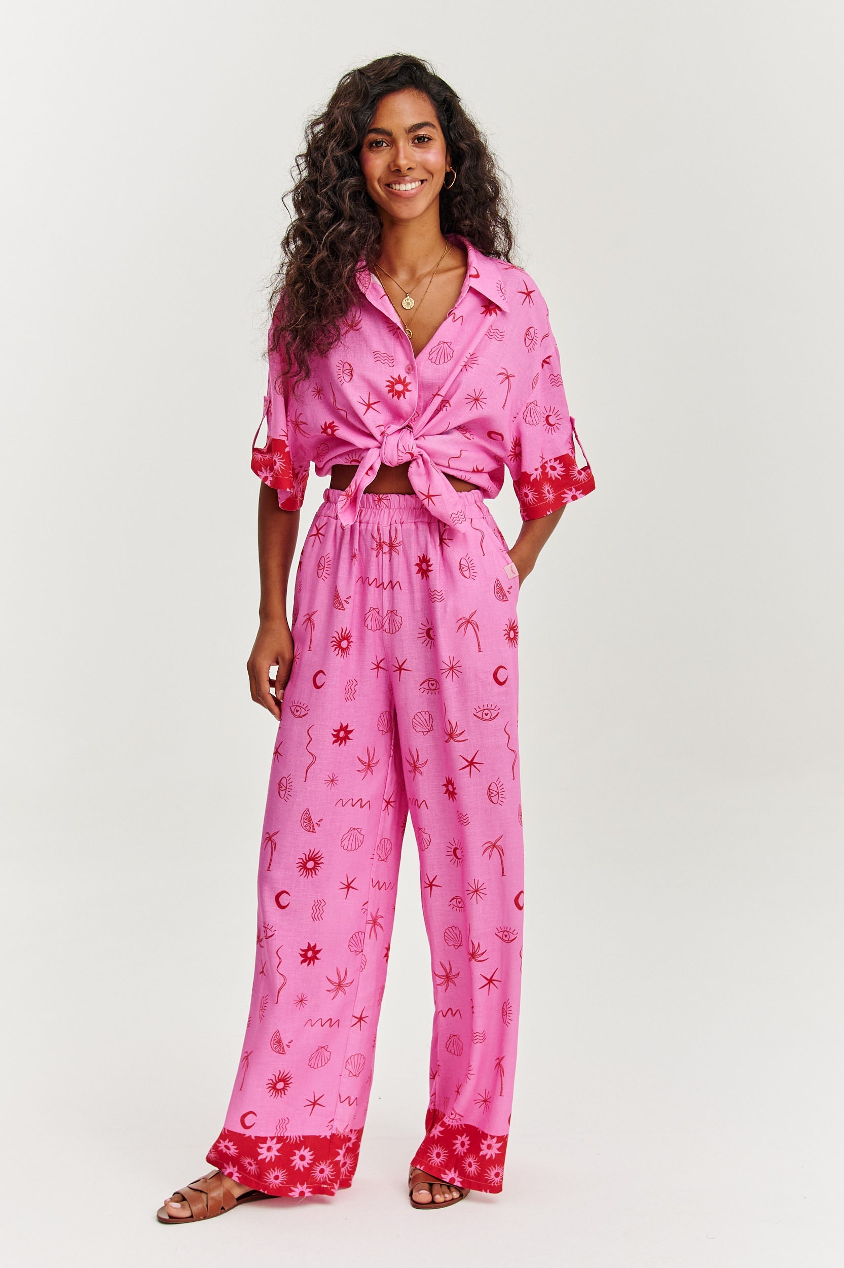 Coastal Sorbet pants are an explosion of summer energy and comfort in one. The wide leg, elastic waistband and holiday print in pink and red shades will take you straight to the beach - even if only in thought.