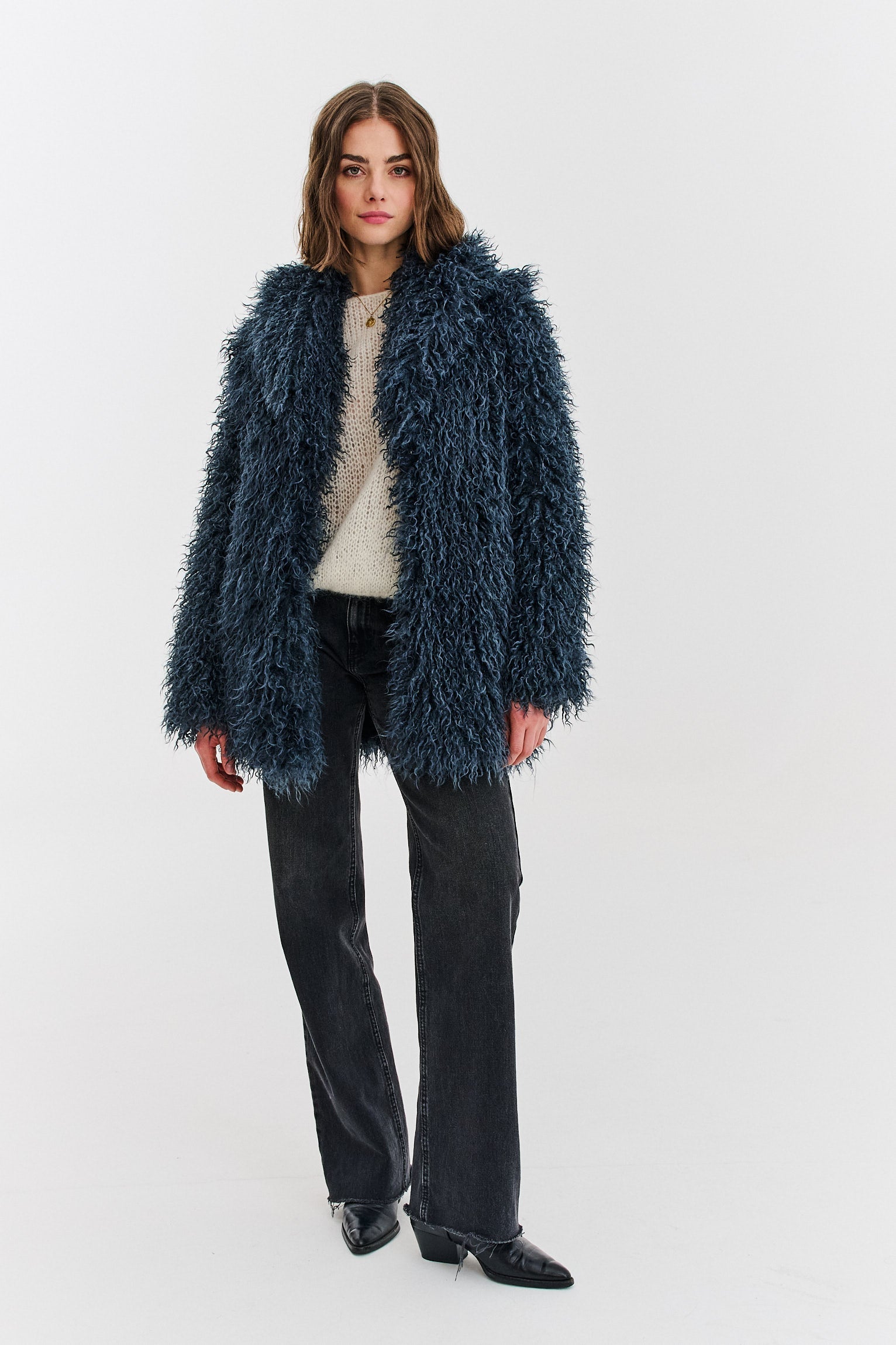 Dark Moon faux fur jacket is synonymous with chic and comfort. Its simple, classic cut ensures that all attention is focused on the unique color and texture of the material. The jacket is extremely warm and pleasant to the touch, perfect for winter evenings and cold days.