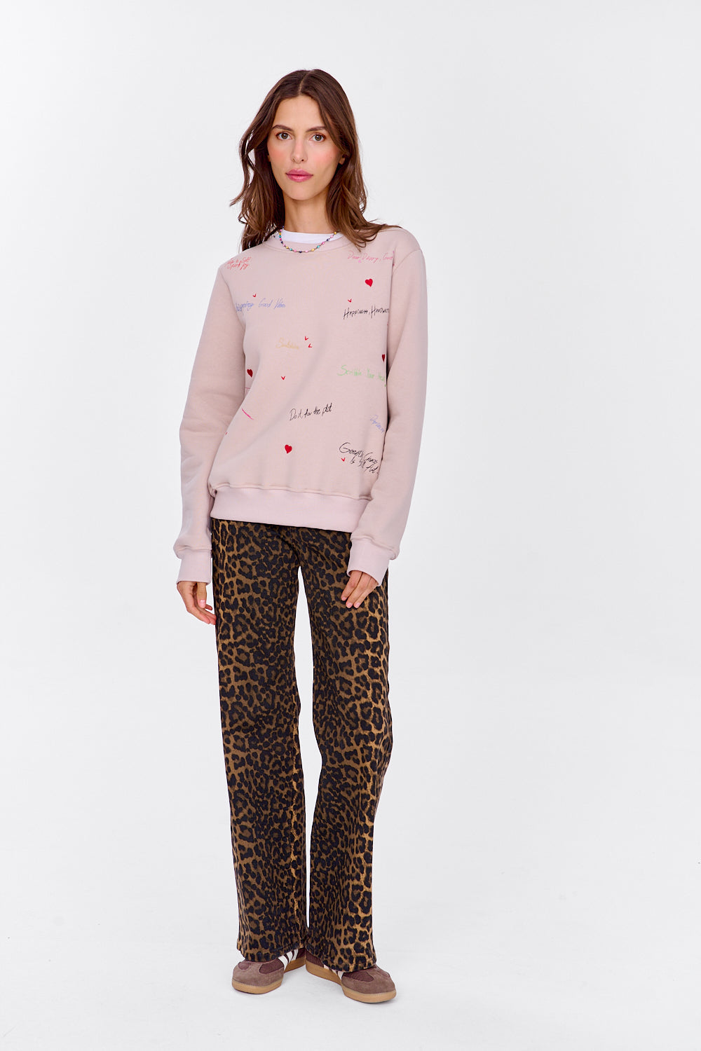 The cream-colored Dear Diary sweatshirt fits perfectly into everyday urban outfits. The loose, cozy cut and soft fabric make the sweatshirt not only stylish but also comfortable for the whole day—from morning coffee to work to evening walks. Wear it with jeans, sweatpants, or your favorite skirt and feel good, no matter the circumstances.