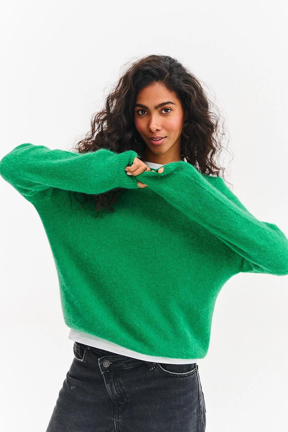 Eden alpaca wool sweater is the perfect choice for any occasion. Its distinctive green color will ensure that you will not go unnoticed. The sweater features a classic round neckline, giving it a timeless feel.