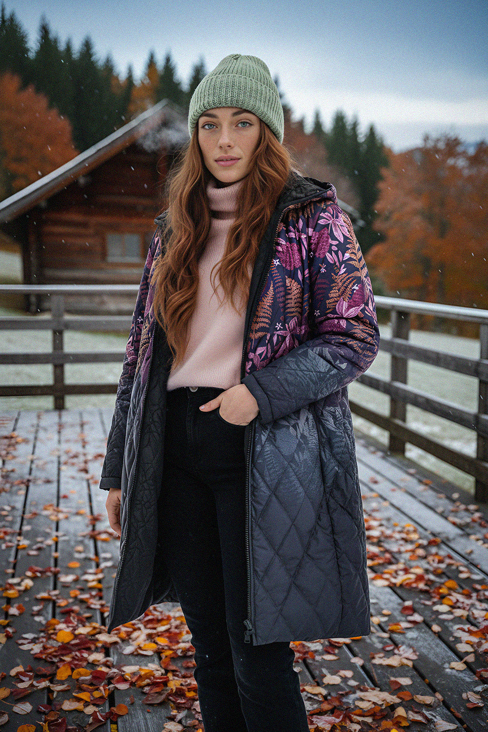 Wear the floral-patterned side when you want to stand out and feel close to nature. Choose the smooth black side when you need a universal coat that matches everything. You decide how you want to look each day, and the Fern Flower coat gives you that freedom.