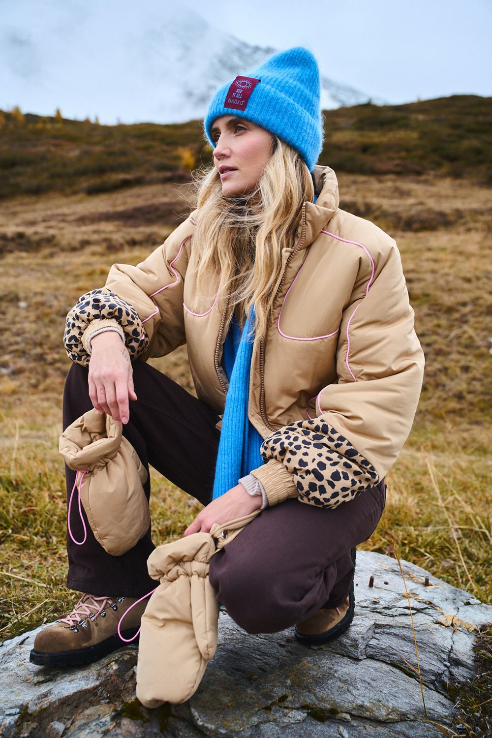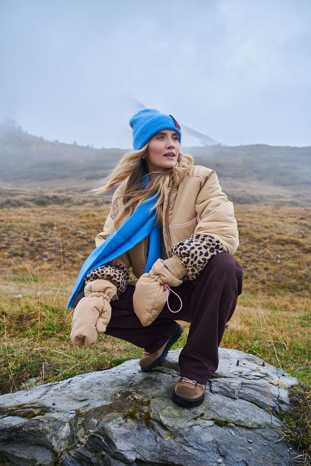Into the Flow winter jacket with gloves is a stylish and incredibly practical set for winter. The short, comfortable bomber cut is perfect for urban outfits. High-quality materials provide warmth, while details like a contrasting zipper and animal print add character.
