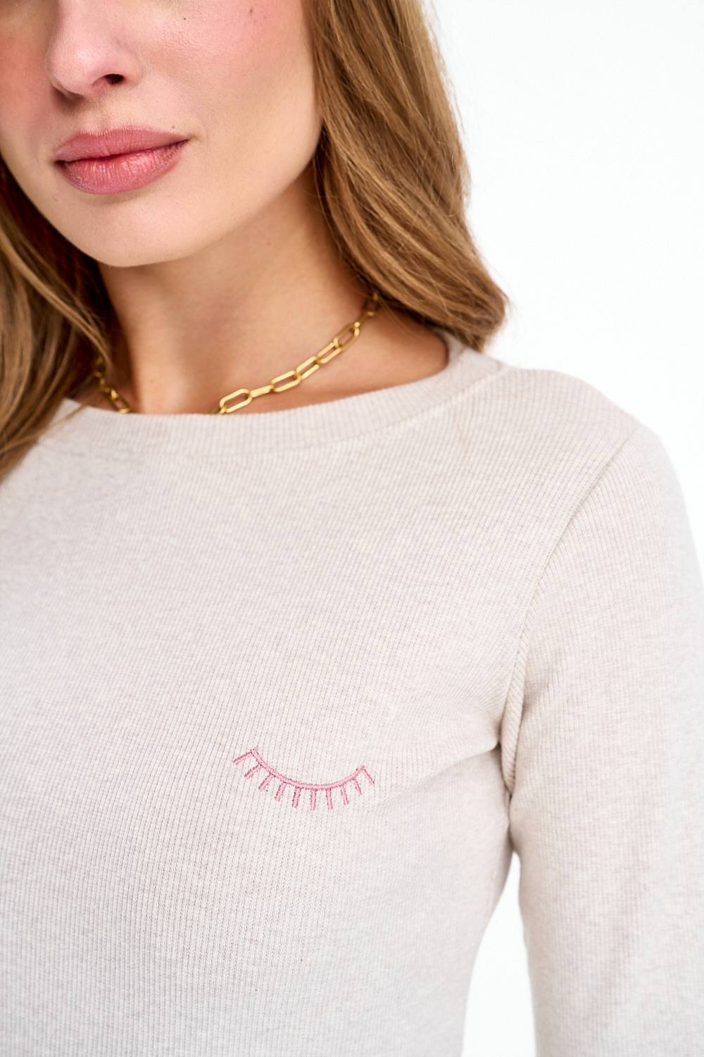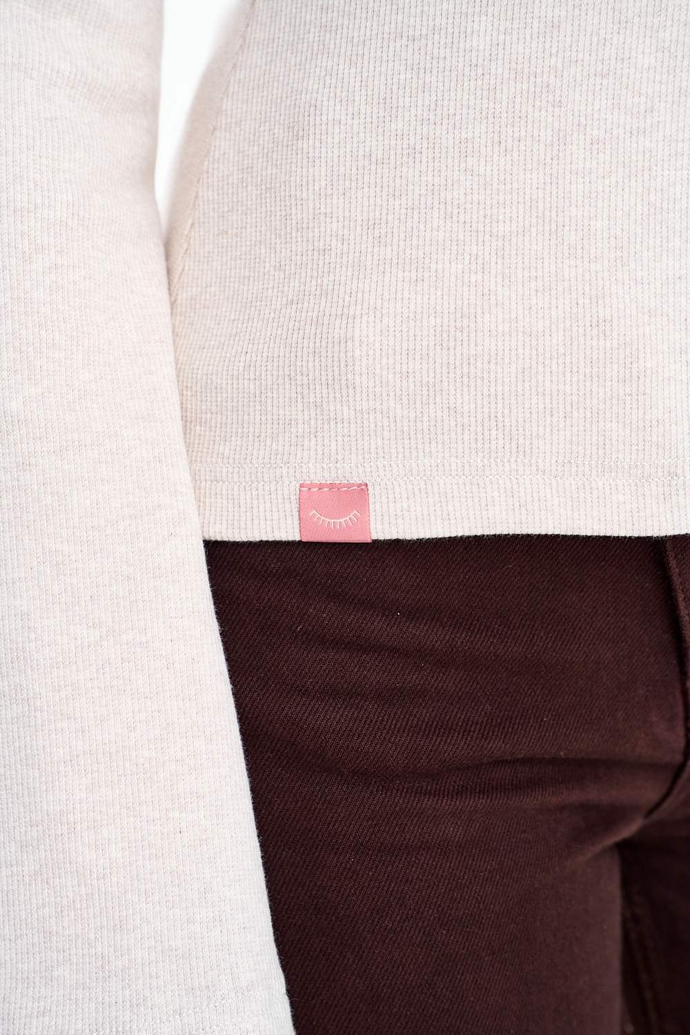 Blank Space Longsleeve is the definition of understated elegance. Ribbed knit fabric in a light, versatile color beautifully adapts to the silhouette, accentuating its assets. The slightly flared bell sleeves evoke the 1970s style, and the delicate eyelash embroidery on the chest is a small detail that makes a big difference.