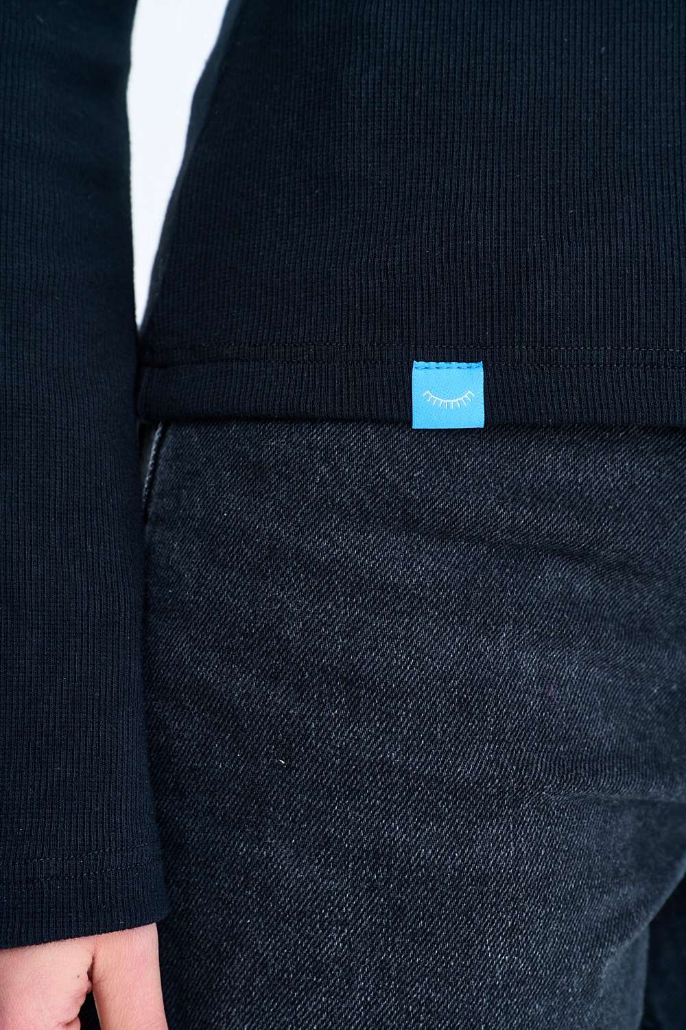 Rainbow Dark Longsleeve combines the elegance of black with the joy of color. The fitted cut with strikingly flared sleeves creates a sensual silhouette. Small but expressive embroidery in rainbow colors breaks up the monochromatic tone and adds positive vibes to the look.