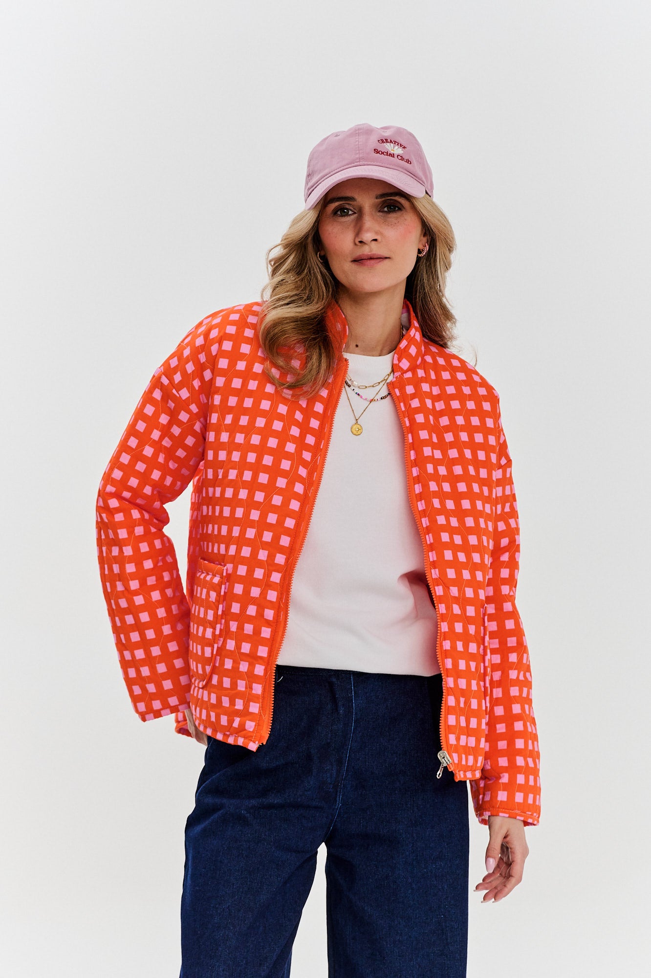 On one side an energetic orange check adding a slightly retro touch to the styling, on the other a floral pattern in shades of pink, orange and purple inspired by nature. The two-sidedness gives you full freedom - you can change the style depending on your mood and the occasion.