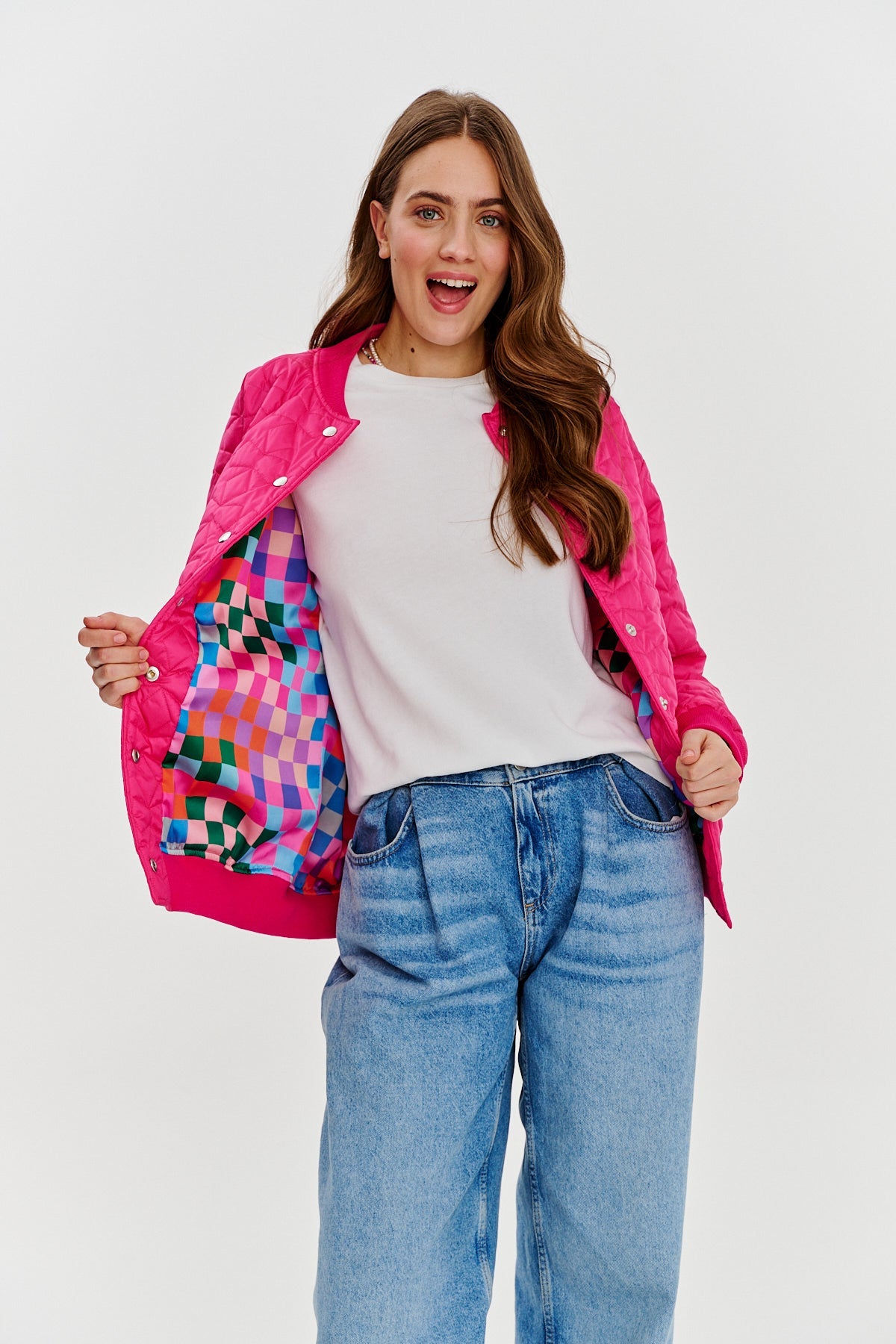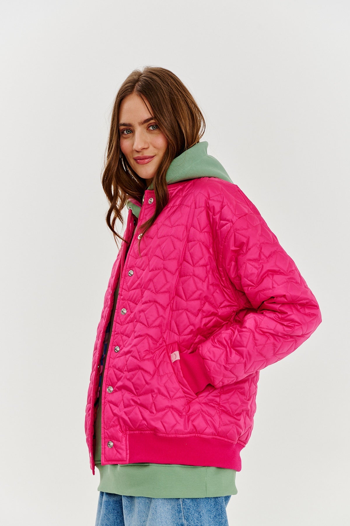 Lightweight, but at the same time warm thanks to its quilted structure, Pink Gravity will be perfect for colder days. The classic cut of the bomber jacket with elastic drawstrings, convenient pockets and fastening with press studs make it a functional yet stylish choice for everyday wear.