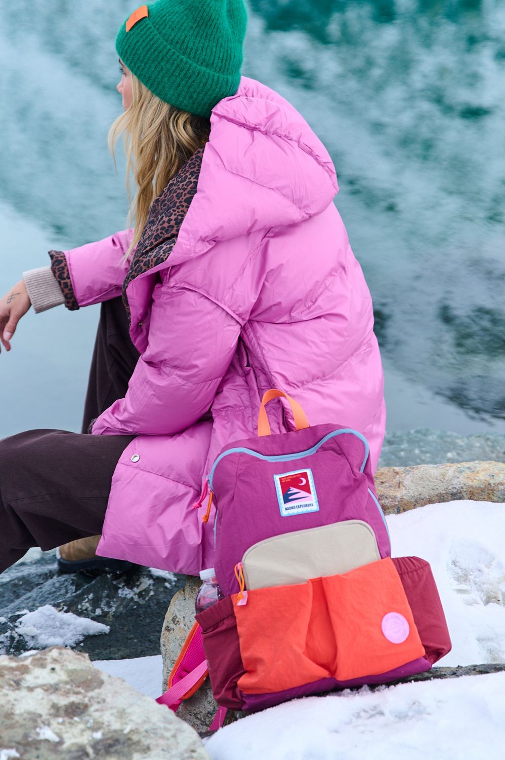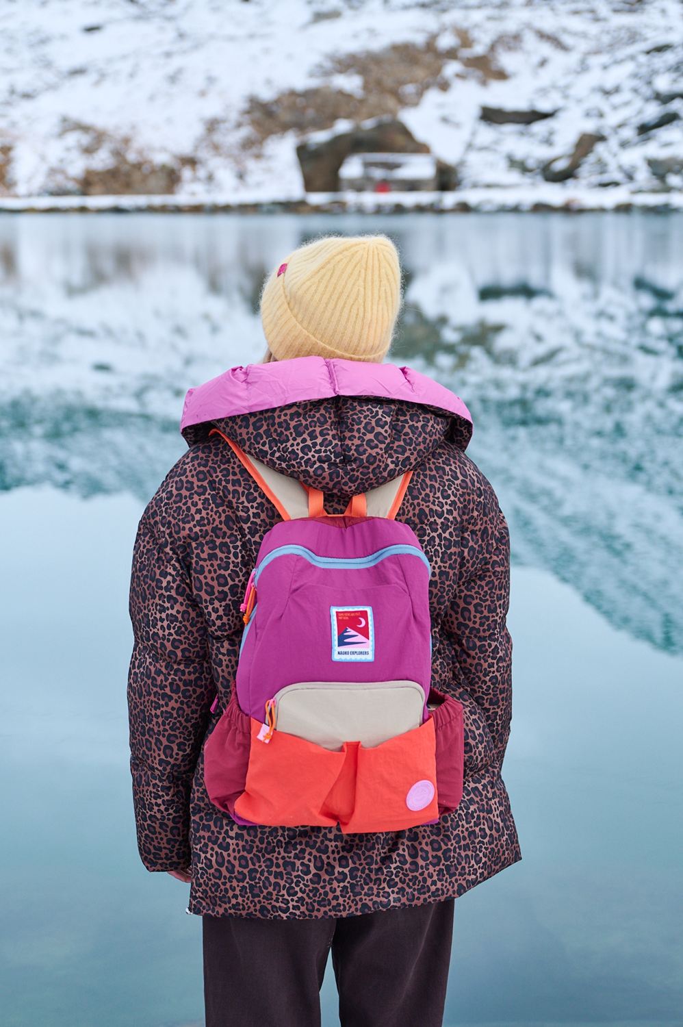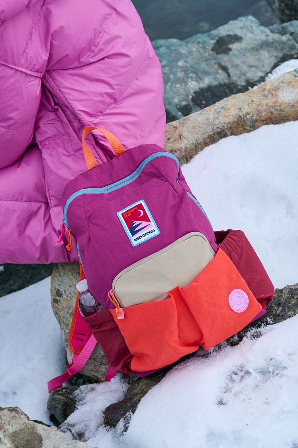 No Limits backpack is an explosion of positive energy. It's a bold play of colors, dominated by dark purple, broken up by vibrant orange and subdued beige. It's an accessory that will liven up any outfit, even the simplest.