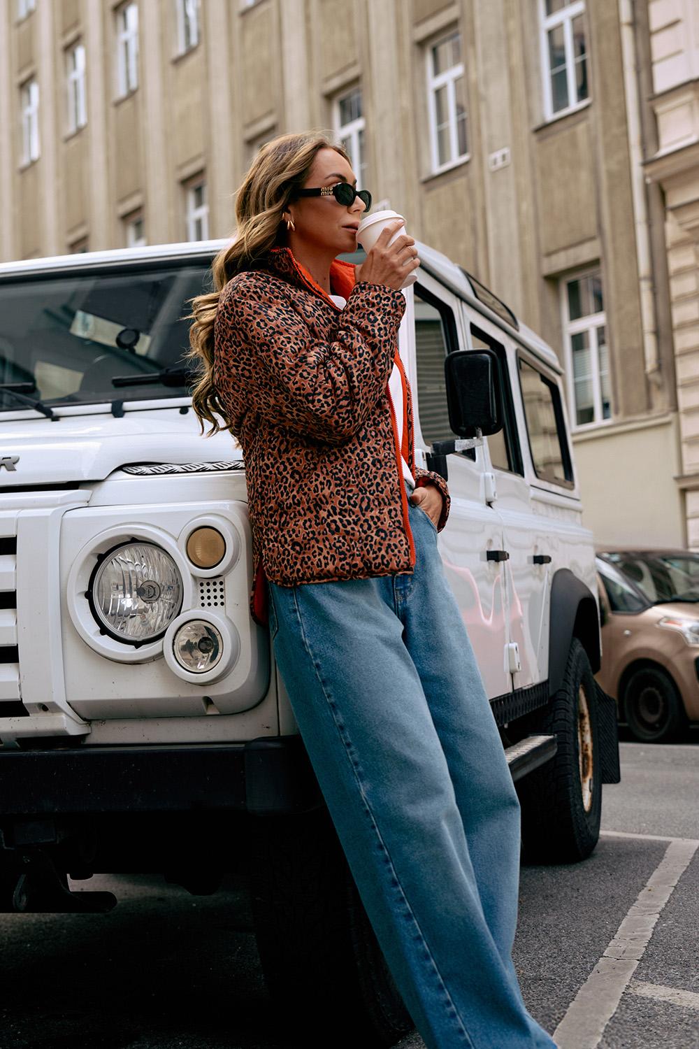 Poppy Wildheart double-sided jacket combines casual style and elegance in a unique form. On one side, it catches the eye with a fashionable leopard print – perfect for lovers of bold patterns that are sure to attract attention. The other side is juciy orange with quilting and details that you will love for their minimalism and comfort.