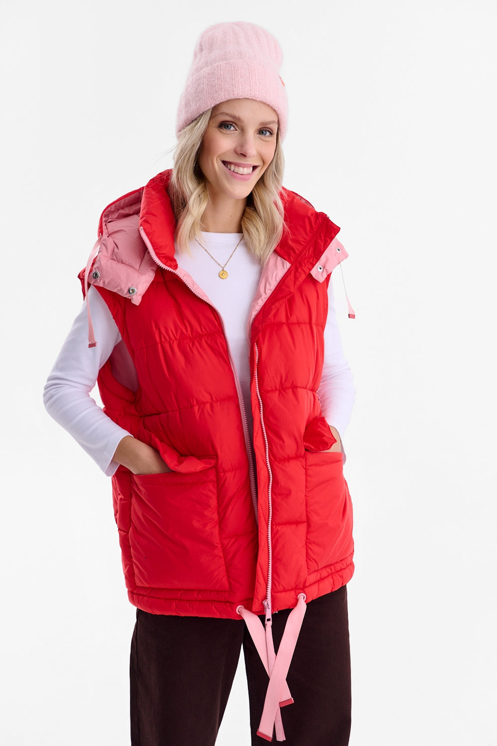 Practicality is its middle name. Detachable sleeves allow for a quick transformation from a warm jacket to a fashionable, down vest. Large pockets will hold all your treasures, and a comfortable hood will protect you from the wind. It's the perfect choice for a bold woman.