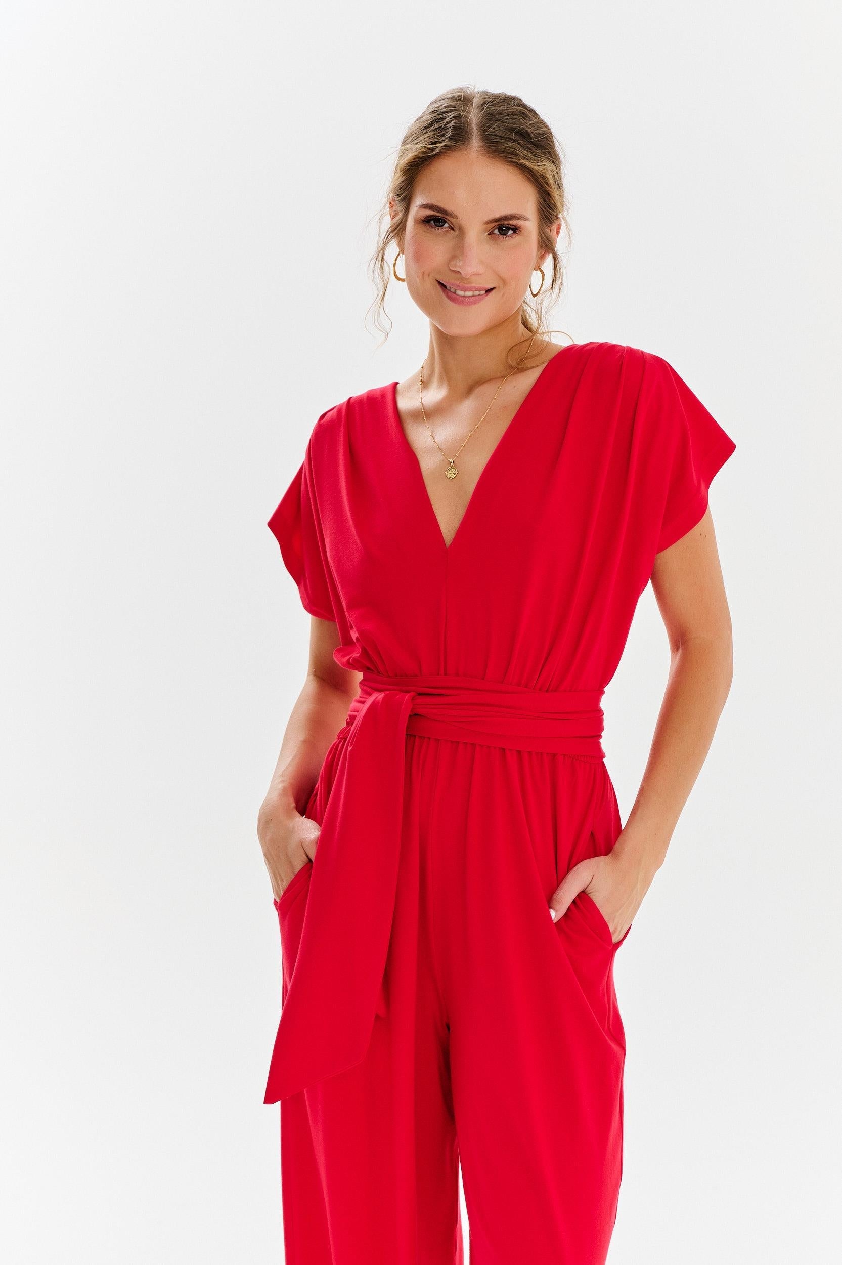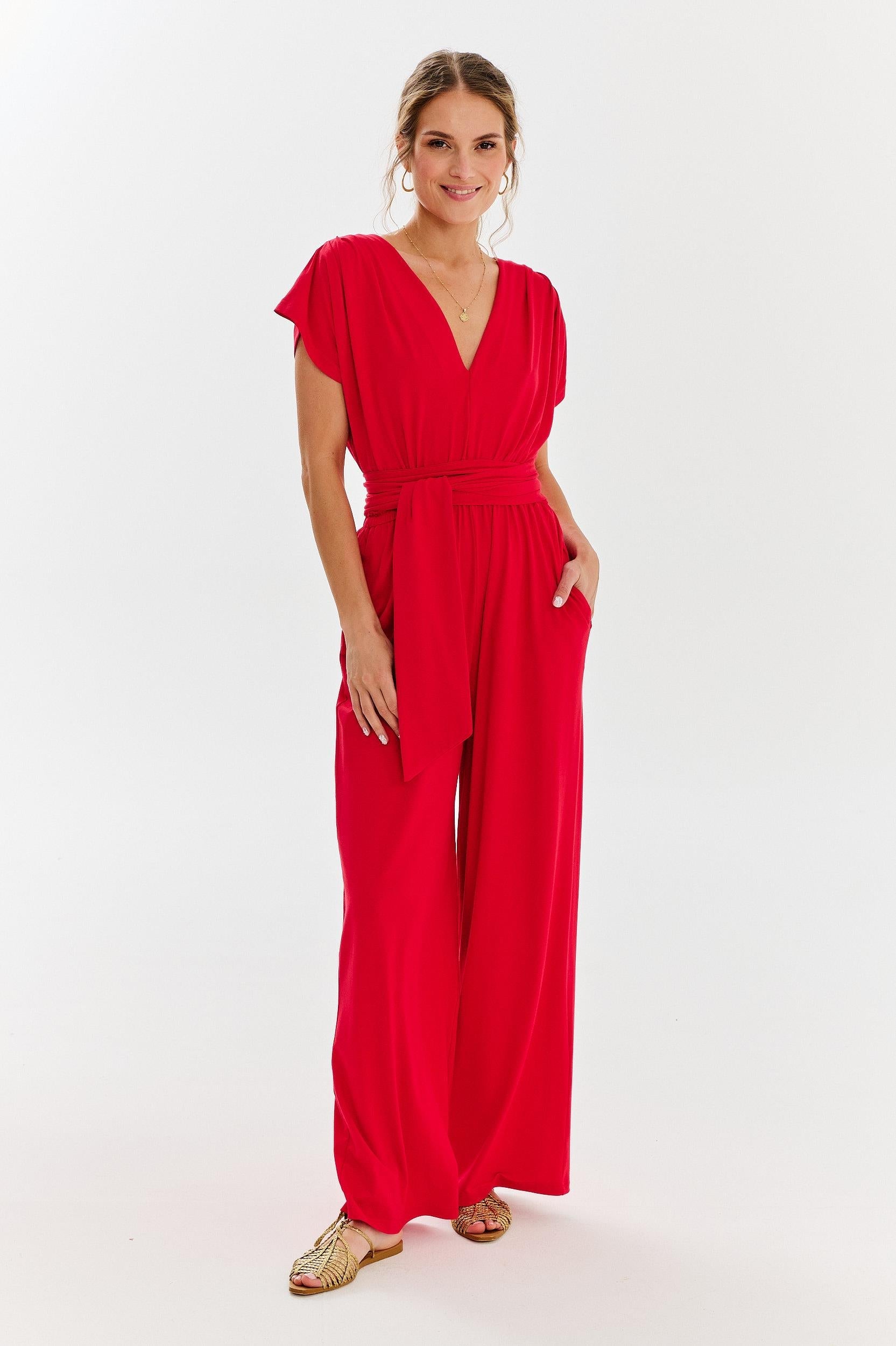 This jumpsuit is an excellent choice for many occasions - from everyday meetings to more formal events. Its red color and refined details will make you feel confident and stylish, whatever the occasion.