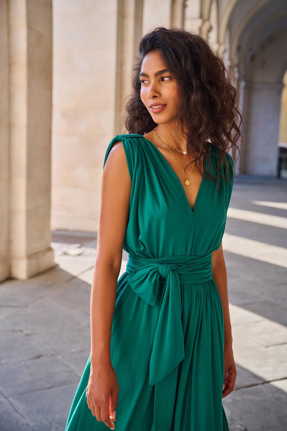 Sage Serenity multiway dress is a true definition of elegance and chic. Its unique design makes it an eye-catcher and impresses with its unique form. Creases on the sleeves add lightness and delicacy.