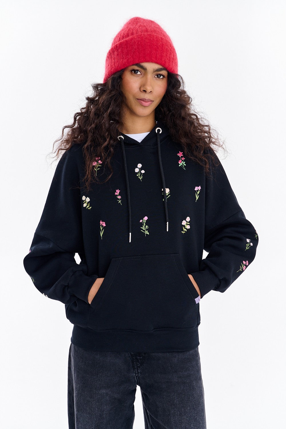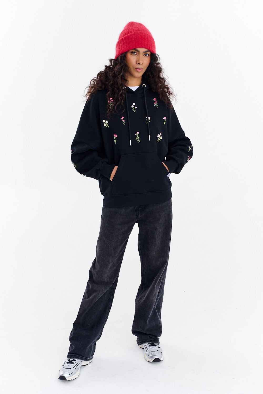 The Secret Garden hoodie is for those who value comfort with an artistic twist. The roomy, oversized cut and large hood ensure maximum comfort, while the soft, dark knit fabric provides the perfect backdrop for colorful embroidery.