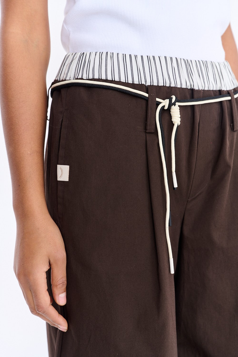 What sets them apart is the contrasting waistband, which adds a touch of originality. The elastic waistband with a drawstring allows for a perfect fit. Wear them every day with a sweatshirt and sneakers, or break the mold by pairing them with an elegant shirt.
