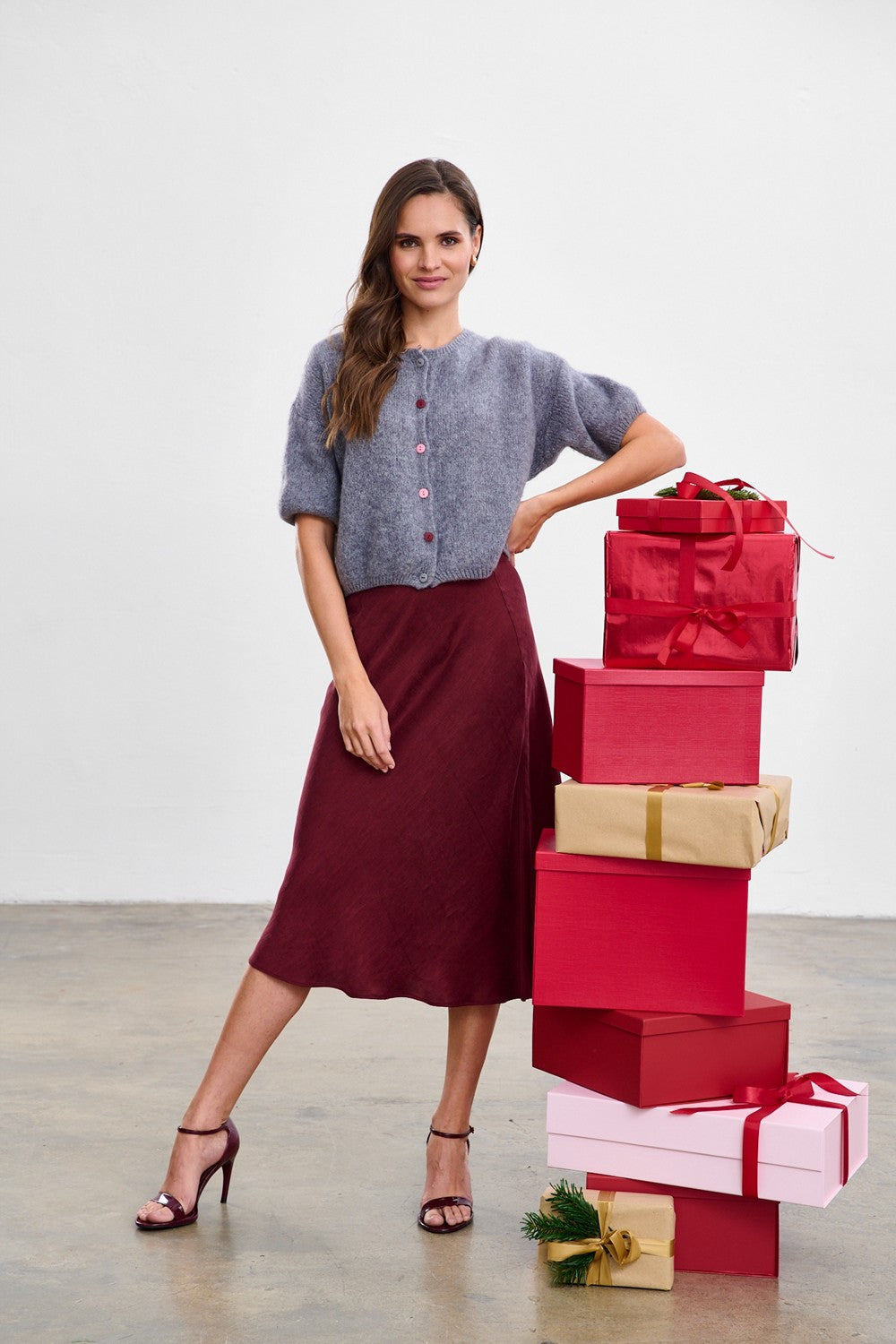 Silver Feather wool cardigan is a unique option for fans of unconventional solutions. The short-sleeved batwing cut makes it look great over a shirt or long sleeve. The gray melange fabric is versatile, and the wool blend ensures thermal comfort.