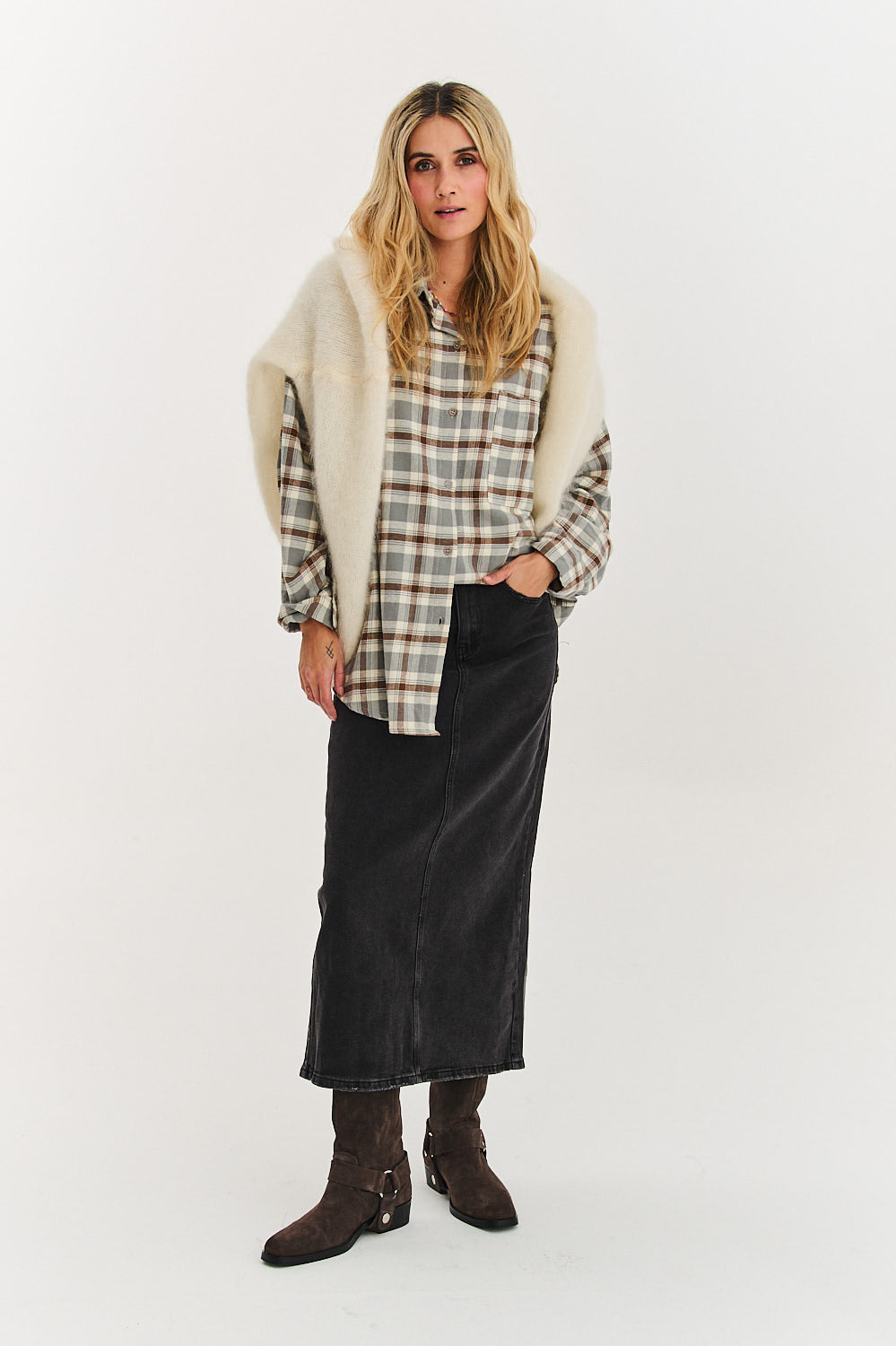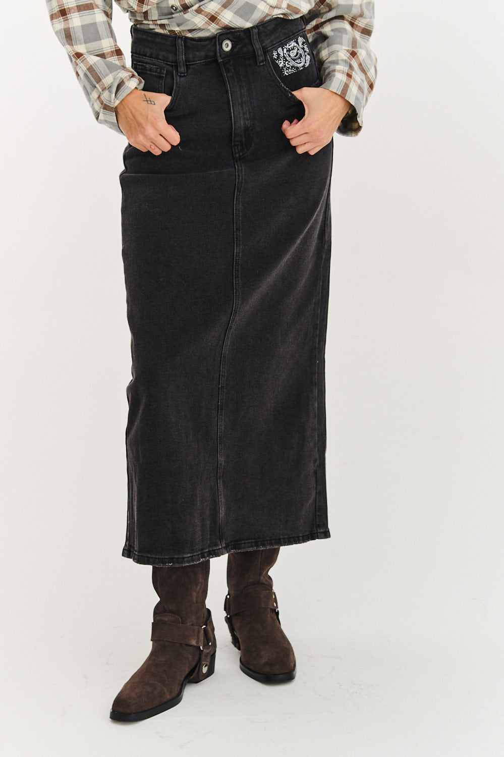 The Slow Season denim skirt is a must-have in any closet. This maxi length model has a classic pencil cut with a back opening for freedom of movement. Made of high-quality denim in a fashionable gray shade.