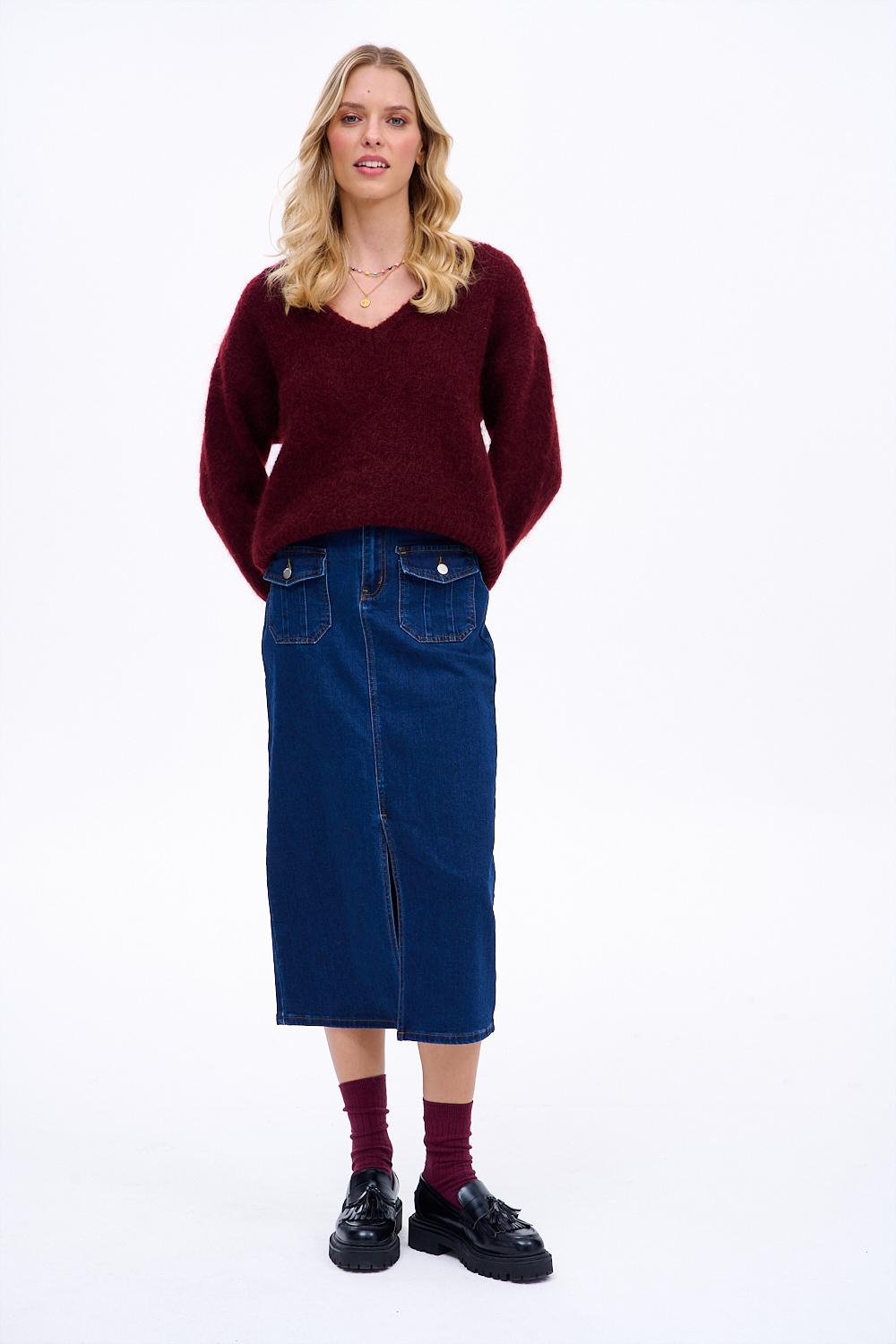 This skirt is the perfect base for creating layered autumn and spring outfits. It looks great with a fitted turtleneck as well as a loose sweater or T-shirt. Pair it with cowboy boots, sneakers, or heeled ankle boots to look different every day, yet always stylish.