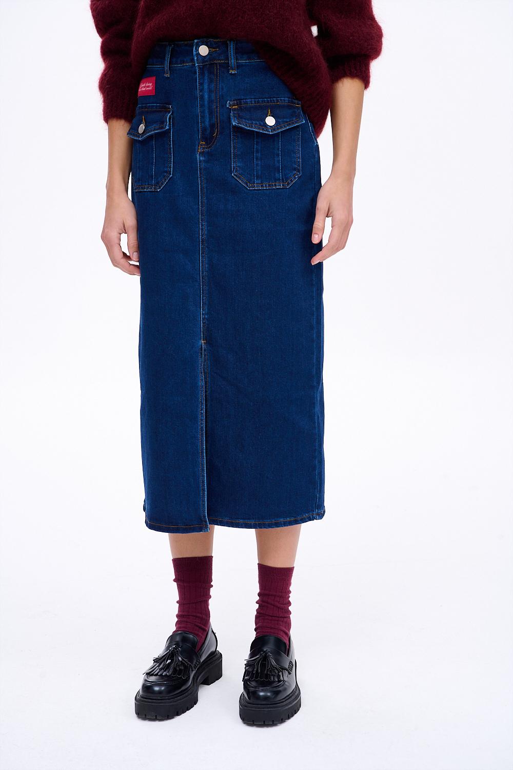 Slow Novel denim skirt is a tribute to timeless classics and comfort. Made from a blend of cotton, polyester, and elastane, it fits the body perfectly while ensuring freedom of movement. Two patch pockets on the front add a retro feel, and the "Gentle living in a loud world" embroidery is a subtle manifesto of your lifestyle.