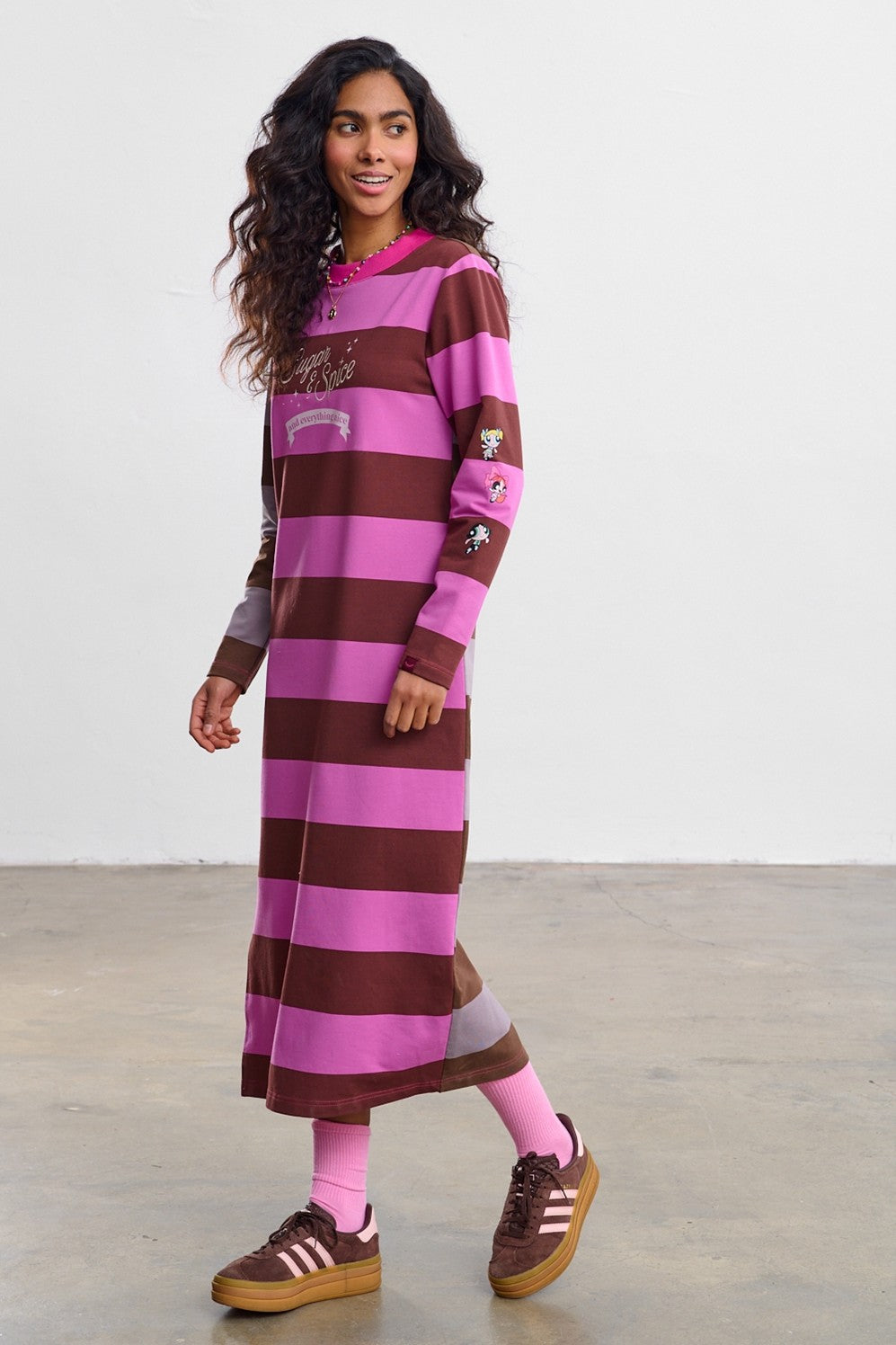 A unique feature is the subtle Powerpuff Girls print. This subtle detail catches the eye and adds character to the dress. Perfect for everyday wear, paired with sneakers or chunky ankle boots, for those who value originality and comfort.